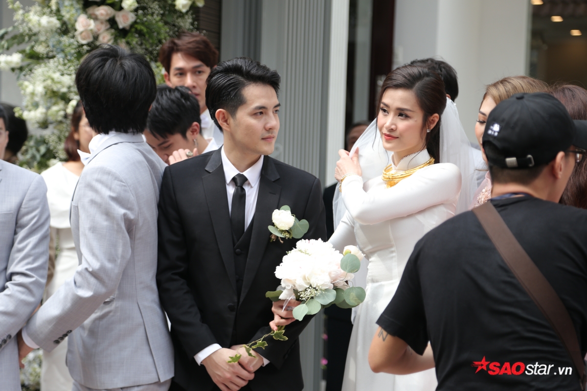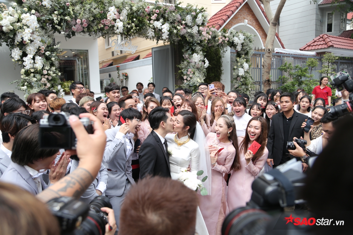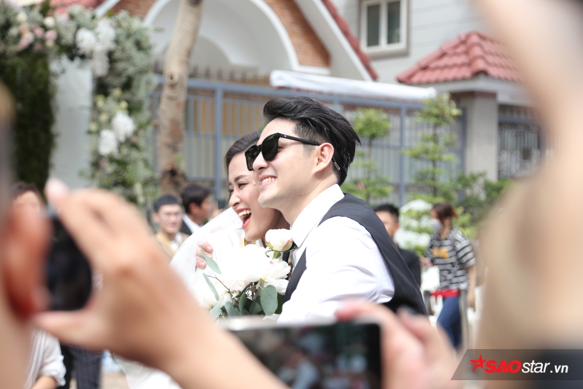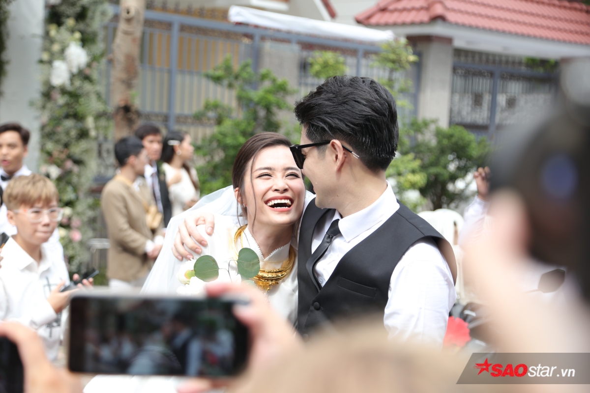Sau khi hoàn tất các nghi lễ theo truyền thống, cô dâu chú rể di chuyển ra ngoài trong sự cổ vũ nhiệt tình của người hâm mộ đã chờ sẵn từ lâu. Diện áo dài đơn giản nhưng không kém phần tinh tế, Đông Nhi xuất hiện xinh đẹp và rạng ngời hạnh phúc bên Ông Cao Thắng. Đi cùng nhau một chặng đường hơn 10 năm, cuối cùng cả hai cũng chính thức “về chung một nhà” khiến nhiều người có mặt không khỏi xúc động.