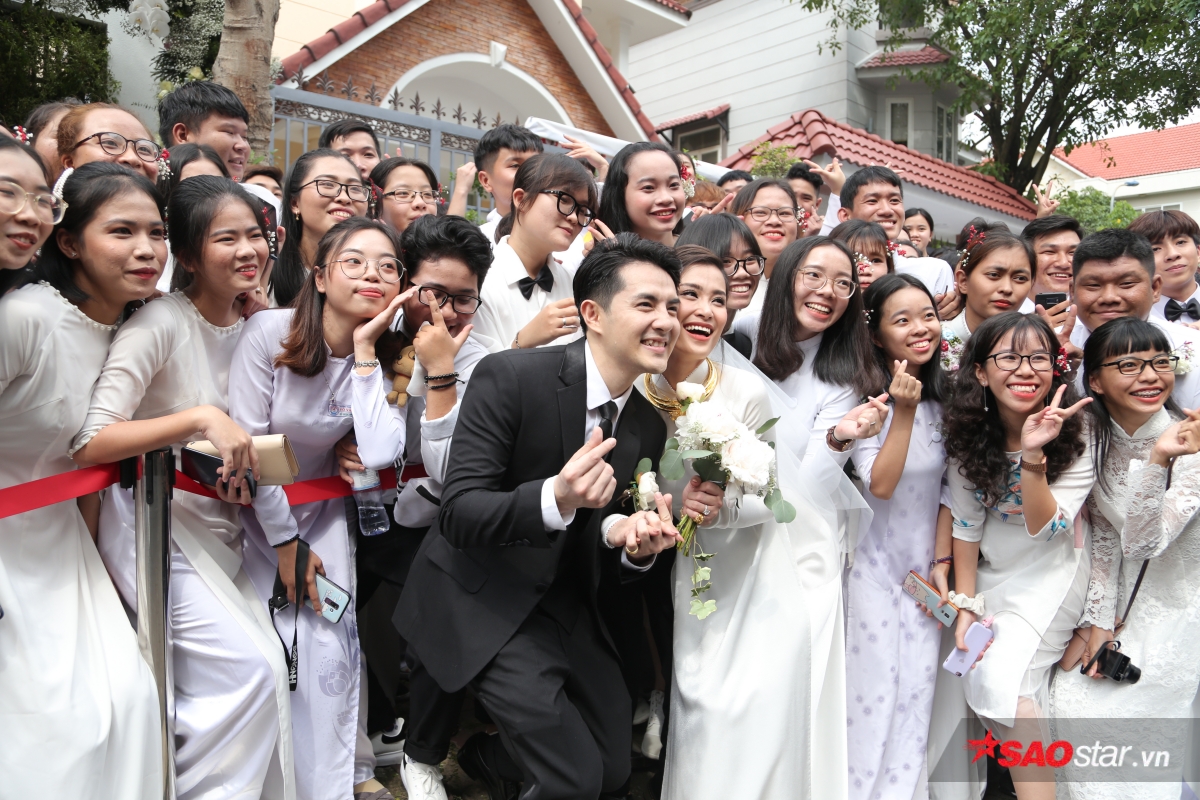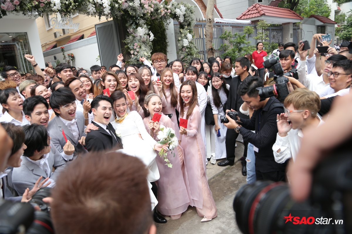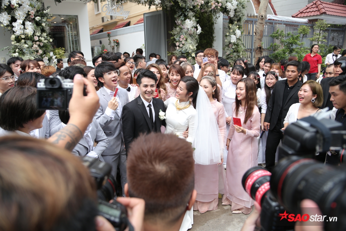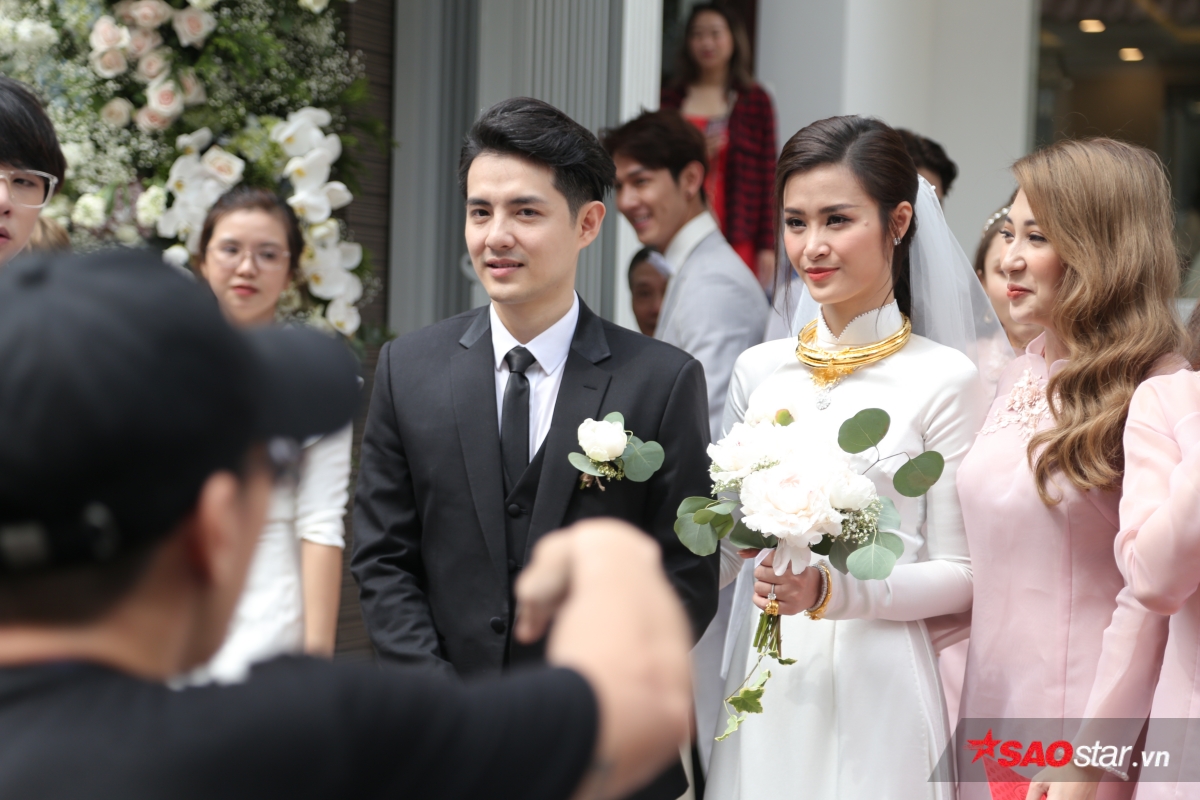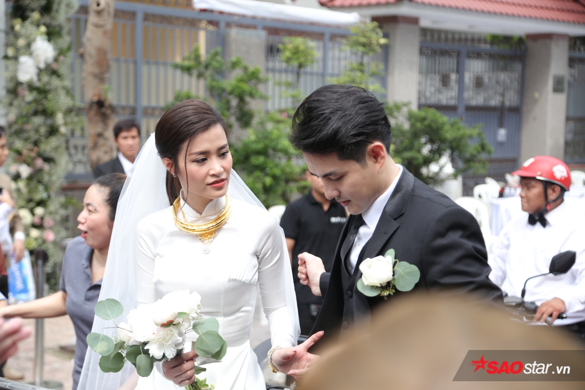 Sau khi hoàn tất các nghi lễ theo truyền thống, cô dâu chú rể di chuyển ra ngoài trong sự cổ vũ nhiệt tình của người hâm mộ đã chờ sẵn từ lâu. Diện áo dài đơn giản nhưng không kém phần tinh tế, Đông Nhi xuất hiện xinh đẹp và rạng ngời hạnh phúc bên Ông Cao Thắng. Đi cùng nhau một chặng đường hơn 10 năm, cuối cùng cả hai cũng chính thức “về chung một nhà” khiến nhiều người có mặt không khỏi xúc động.