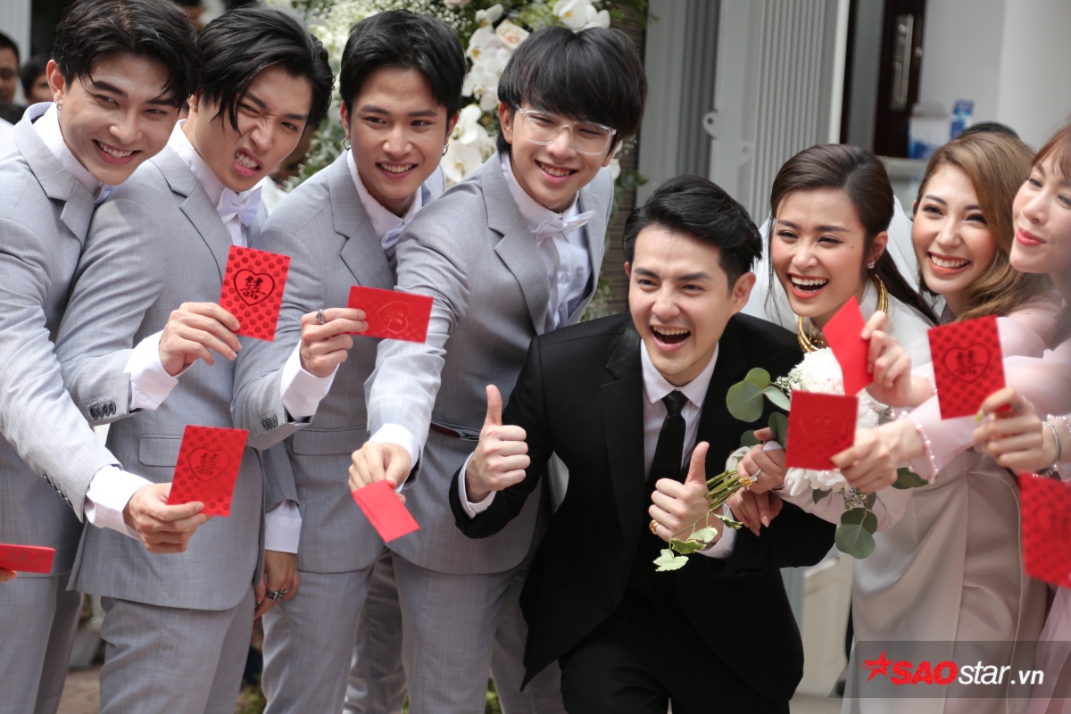 Còn phía nhà trai, các anh chàng nhóm UNI5, Song Luân và Anh Tú phải vất vả vượt qua thử thách cùng với chú rể Ông Cao Thắng để giúp anh đưa cô dâu mới về dinh.