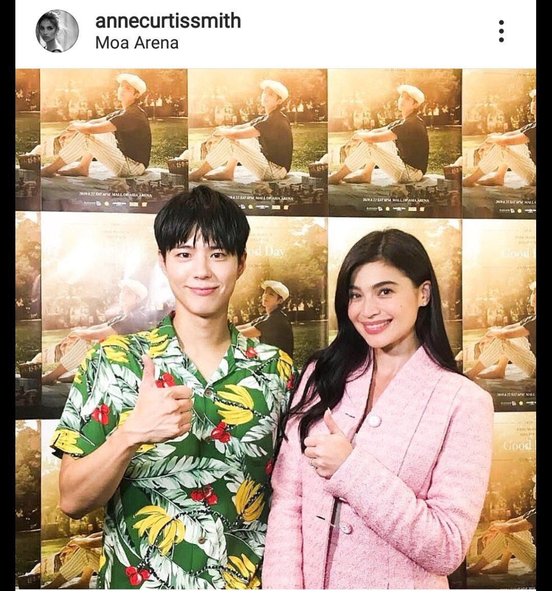 Được biết, Anne Curtis là một nữ diễn viên và người dẫn chương trình truyền hình người Úc gốc Philippines. Vào ngày 22/06, cô ấy đã làm MC tại buổi họp mặt người hâm mộ Good Day của Park Bo Gum tại Manila.