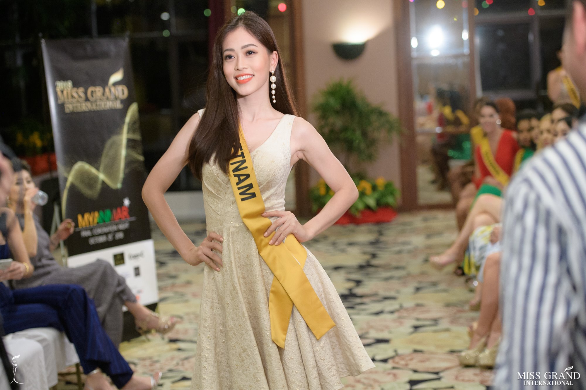 Trong đoạn video livestream của Miss Grand International khi các người đẹp tham quan một cung điện nổi tiếng tại Myanmar, người dẫn dắt chương trình đã mời Phương Nga và các mỹ nhân Mỹ, Phillipines, Paraguay, Peru giao lưu với người hâm mộ. Đại diện Việt Nam “ghi điểm nhẹ” với nụ cười rạng rỡ và nhẹ nhàng kéo tay người đẹp Philippines vào khung hình.