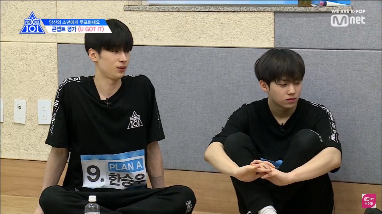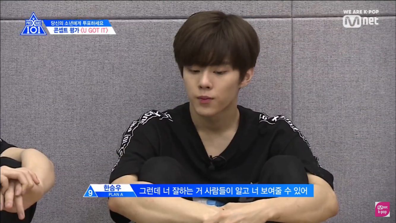 Han Seung Woo hỏi han: “Woo Seok à, không sao chứ?'. Kim Woo Seok: “Em có quá nhiều sự khác biệt. Ngay cả khi đứng ở vị trí center nhưng cũng gây ra rất nhiều lỗi. Các giảng viên cũng đã thấy, em nghĩ họ nghĩ rằng team chúng ta không thể làm được. Em xin lỗi về điều đó”.