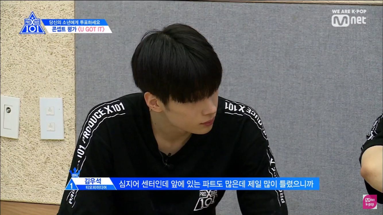 Kim Woo Seok bày tỏ sự thất vọng về bản thân. Đây là lần đầu tiên kể từ khi tham gia chương trình cậu ấy vướng phải nhiều lỗi như vậy. Chàng thực tập sinh lo lắng khi mình là một center mà làm không tốt gây ảnh hưởng đến nhóm.