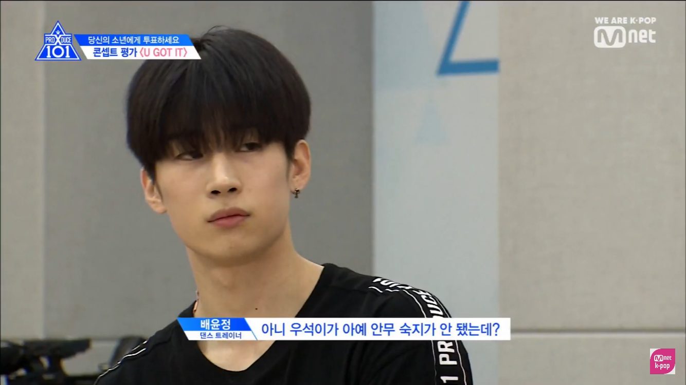 Huấn luyện viên Kwon Jae Sung đề cập rằng vũ đạo đã thay đổi trước khi anh ấy thực hiện luyện tập cho nhóm U Got It. Tuy nhiên, Kim Woo Seok dường như chưa quen và cậu ấy đã phải vật lộn mọi thứ để có thể học vũ đạo thay đổi.