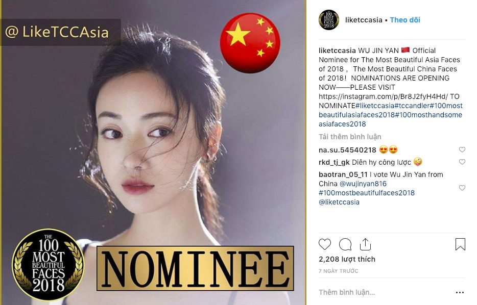 Bên cạnh đó, nữ diễn viên Ngô Cẩn Ngôn - thủ vai Nguỵ Anh Lạc hay Lệnh phi cũng xuất sắc được bình chọn là Top 100 nữ nghệ sĩ đẹp nhất thế giới năm 2018. Nếu như cặp đôi Càn Long - Nguỵ Anh Lạc đã có một kết thúc có hậu trong phim thì có lẽ, ở ngoài đời thực, Nhiếp Viễn và Ngô Cẩn Ngôn đã nhận được thành quả sau bao nỗ lực của mình!