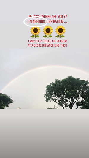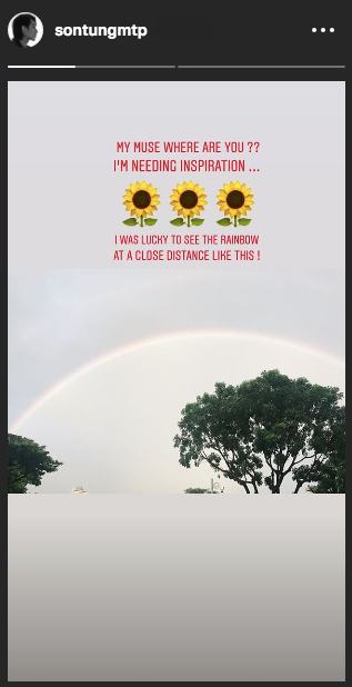 Sơn Tùng viết: “Nàng thơ của tôi ơi, em ở đâu? Tôi đang cần niềm cảm hứng. Thật may mắn khi được ngắm cầu vồng ở khoảng cách gần thế này!”