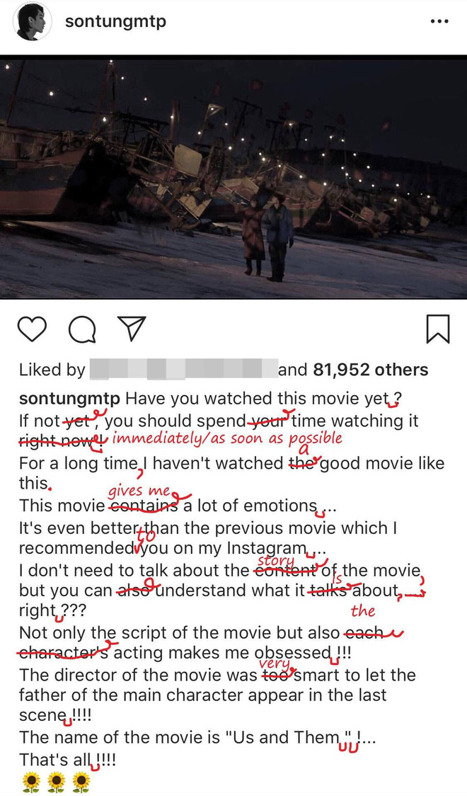 Trước đó, khi viết một đoạn rất dài bằng tiếng Anh, Sơn Tùng đã nhận ngay được màn chấm thi ngữ pháp “cực gắt” của cộng đồng mạng…