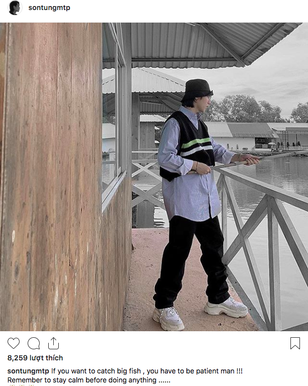 Mới đây, Sơn Tùng M-TP vừa đăng tải khoảnh khắc “cầm cần câu” đi câu cá. Vẫn với hình ảnh mang thần thái “soái ca”, chàng ca sĩ gốc Thái Bình làm cư dân mạng một lần nữa thêm “đốn tim”. Tuy nhiên điều đáng chú ý ở đây là dù đi câu nhưng Sơn Tùng vẫn không quên làm thêm câu “châm ngôn” bằng tiếng Anh.