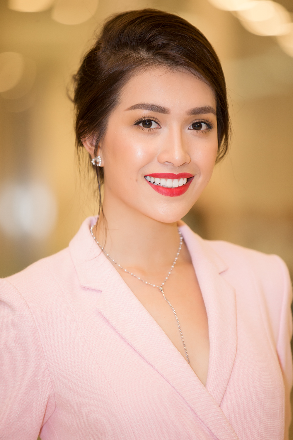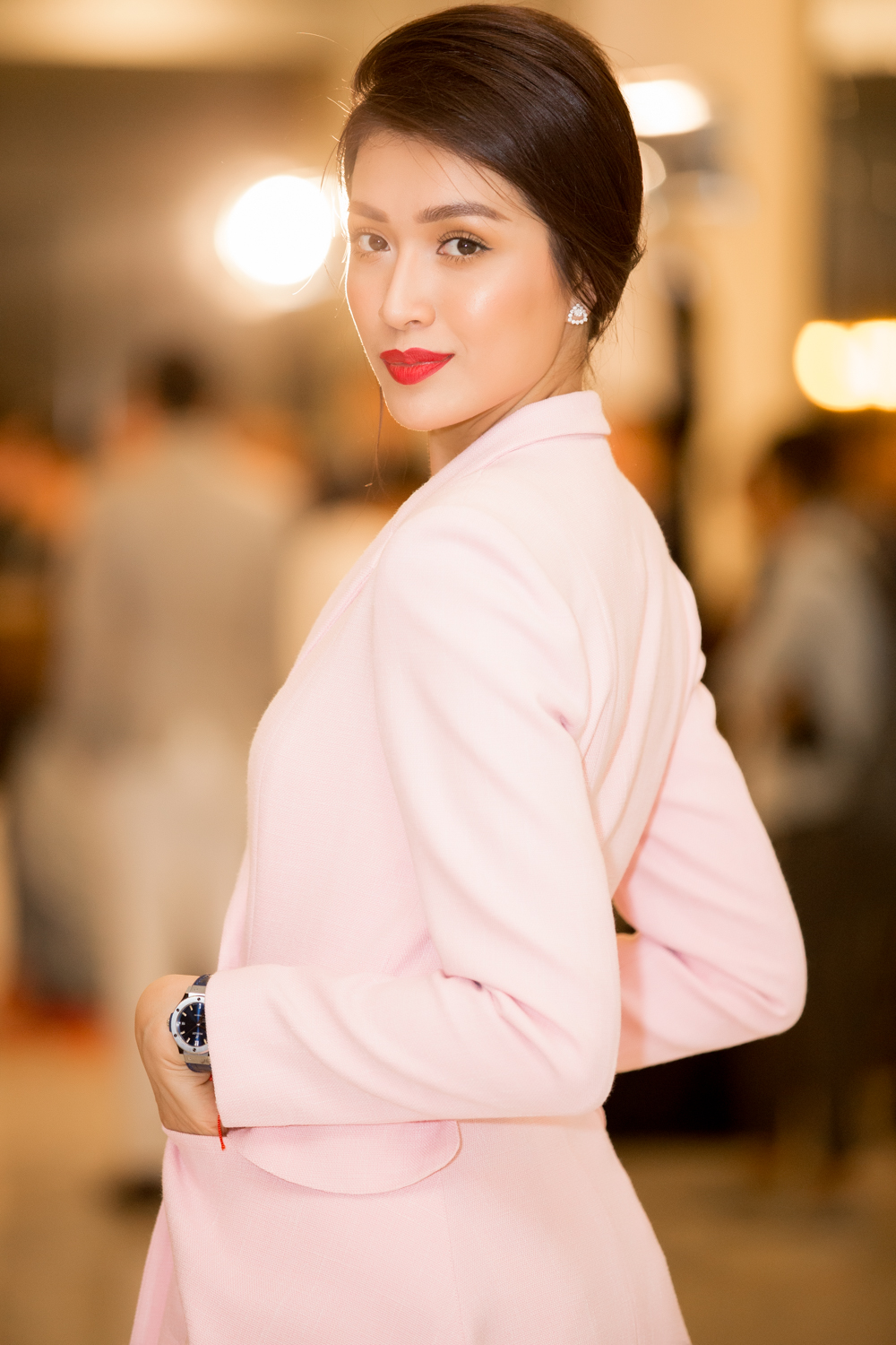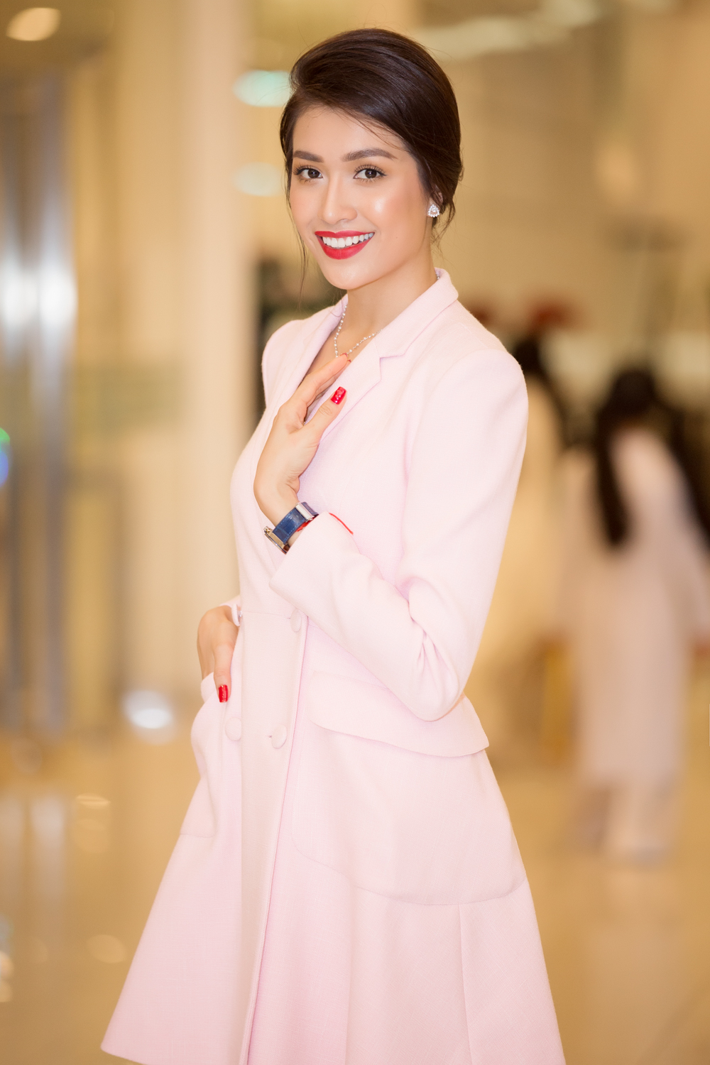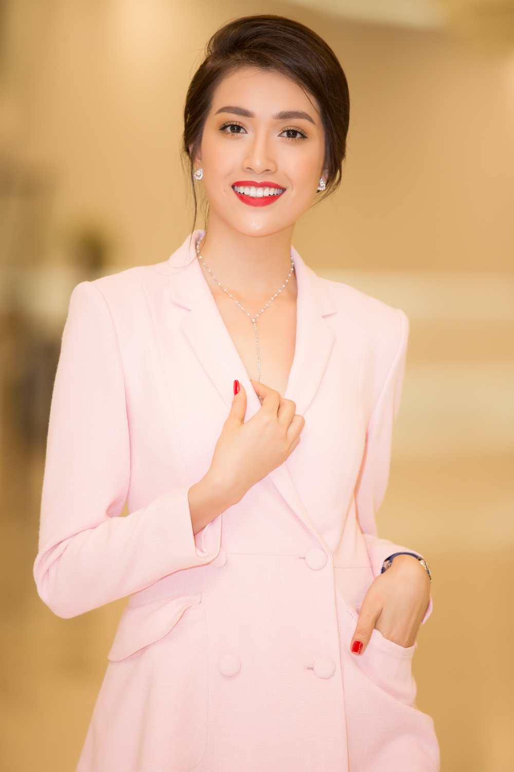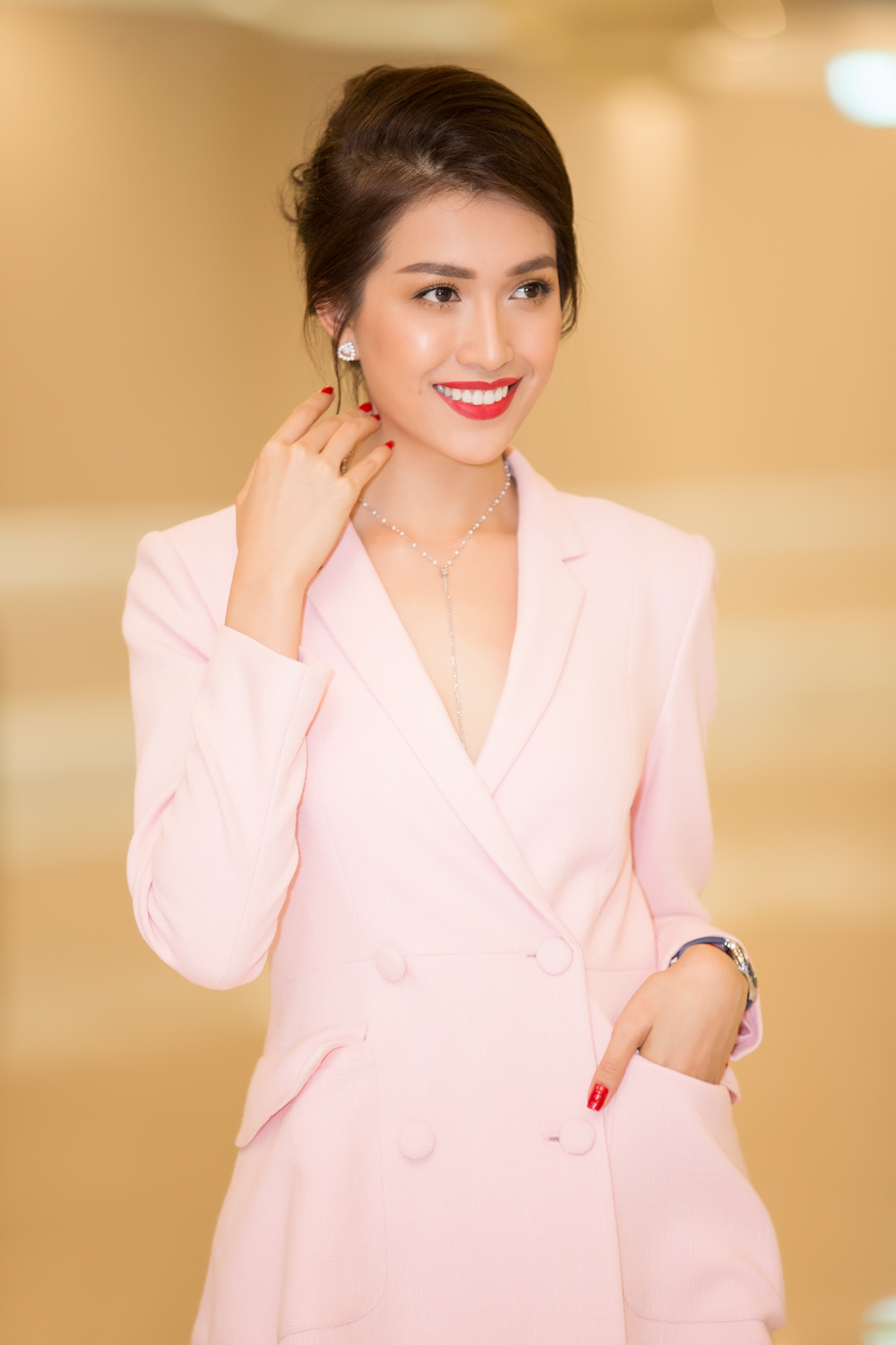 Người đẹp tiếp tục chứng minh gu thời trang của mình khi chọn mái tóc búi gọn phía sau, đi cùng trang sức kim cương sang trọng. Tất cả giúp tôn lên ngoại hình rạng rỡ và vô cùng ngọt ngào cho Lệ Hằng khi xuất hiện ở chương trình.