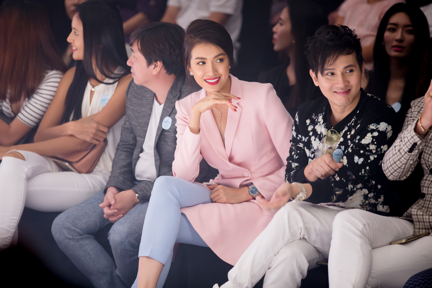 Góp mặt ở hàng ghế đầu, Á hậu Lệ Hằng chăm chú theo dõi phần trình diễn của các mẫu nhí trong 4 bộ sưu tập khác nhau.