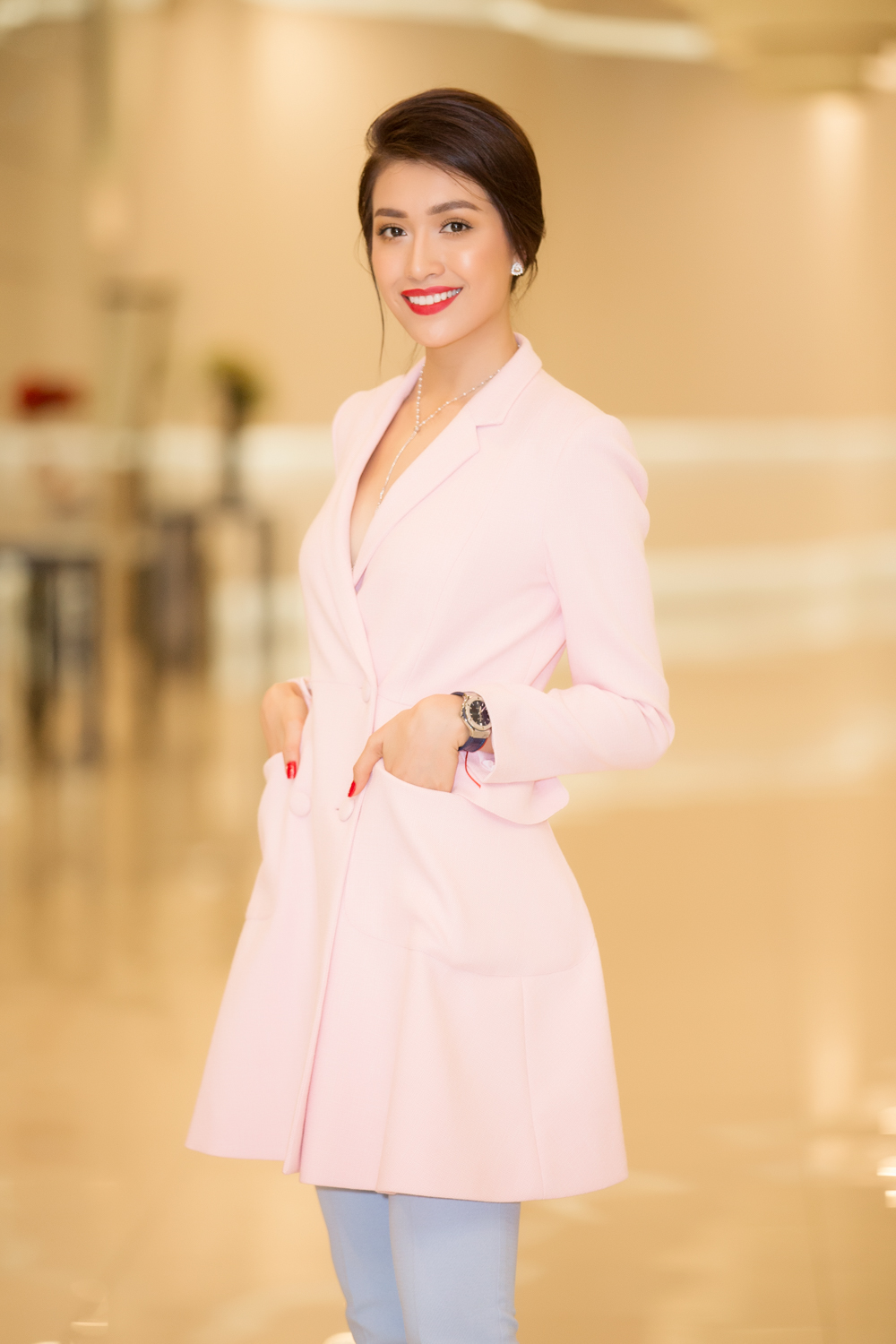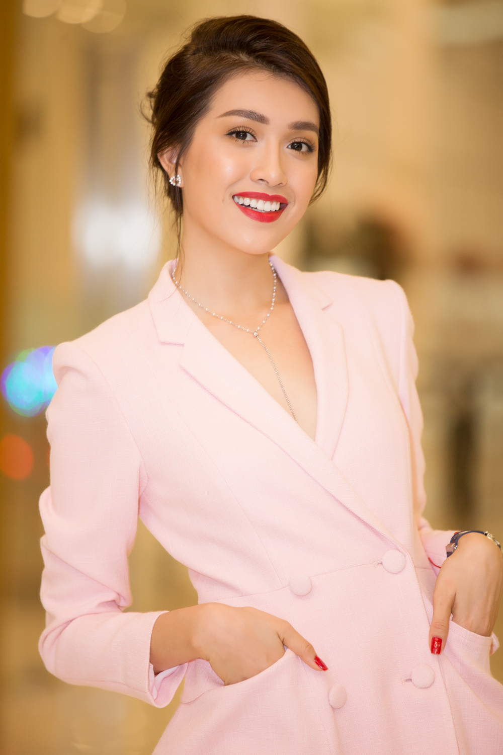 Trang phục có phom dáng quen thuộc và xu hướng hiện đại, kết hợp ngẫu hứng của hai tông màu pastel mang đến vẻ ngoài thanh lịch, nữ tính cho Á hậu Lệ Hằng.