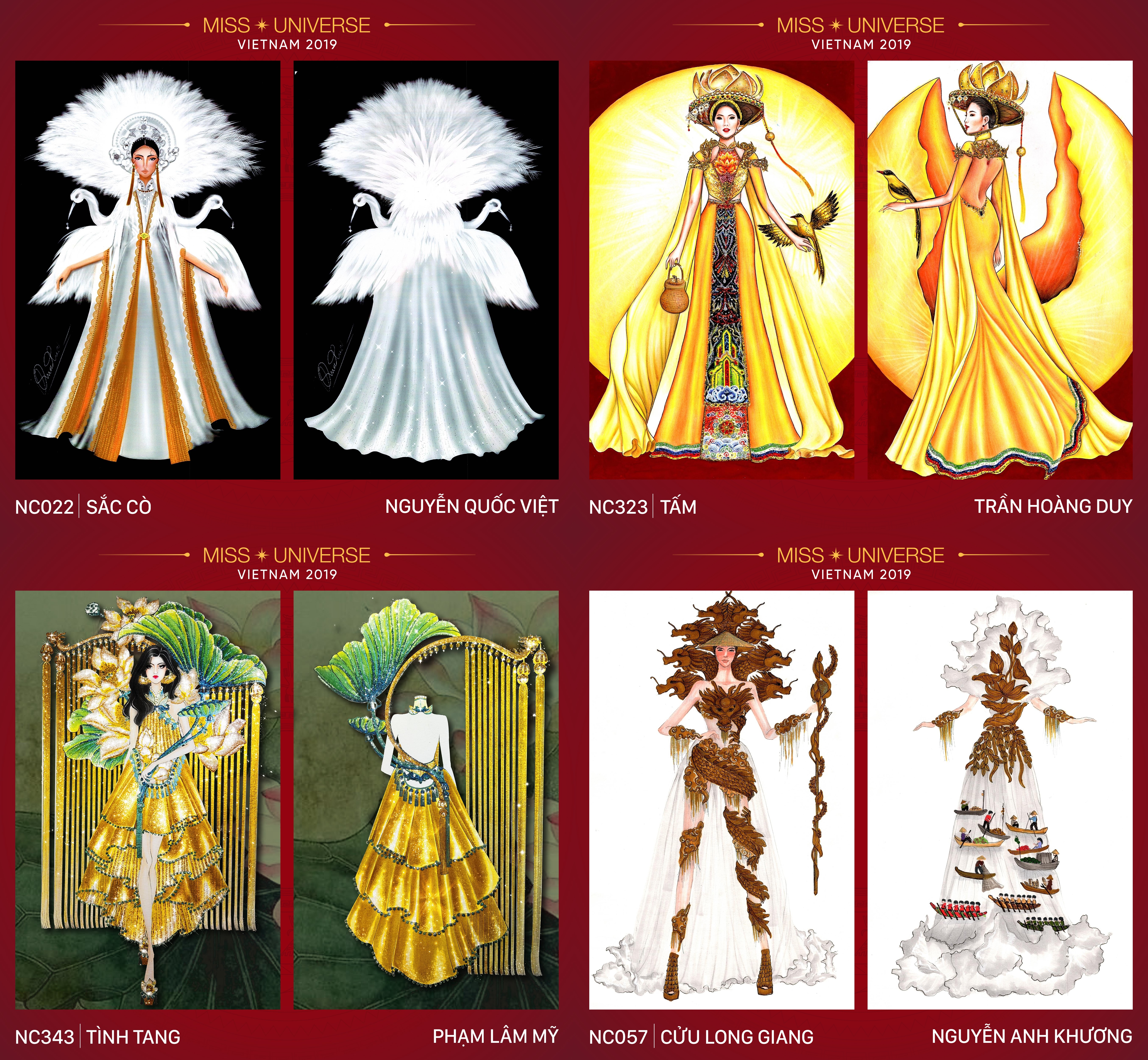 Sau khi tìm ra 5 mẫu thiết kế trang phục dân tộc đầu tiên lọt vào Top 15 cuộc thi tìm kiếm National Costume cho Hoàng Thùy mang đến đến Miss Universe 2019, các fan đang tò mò liệu những bản vẽ nào sẽ được ban giám khảo chuyên môn lựa chọn. 30 bài thi khiến bộ tứ giám khảo hoa hậu H'Hen Niê, á hậu Lệ Hằng, nhà thiết kế Linh San, nhà thiết kế Thuận Việt ấn tượng nhất sẽ sớm được công bố.