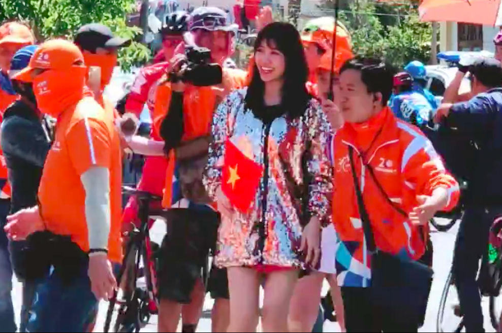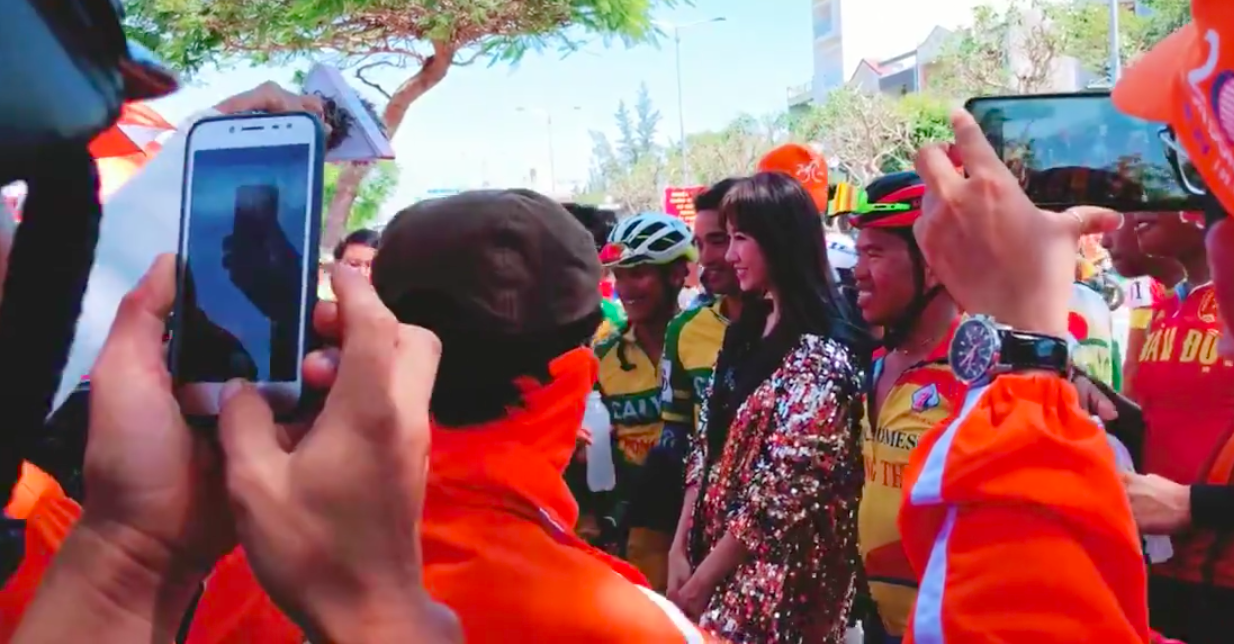 Clip: Hari Won đến cổ vũ cho giải đua xe đạp ở Phú Yên