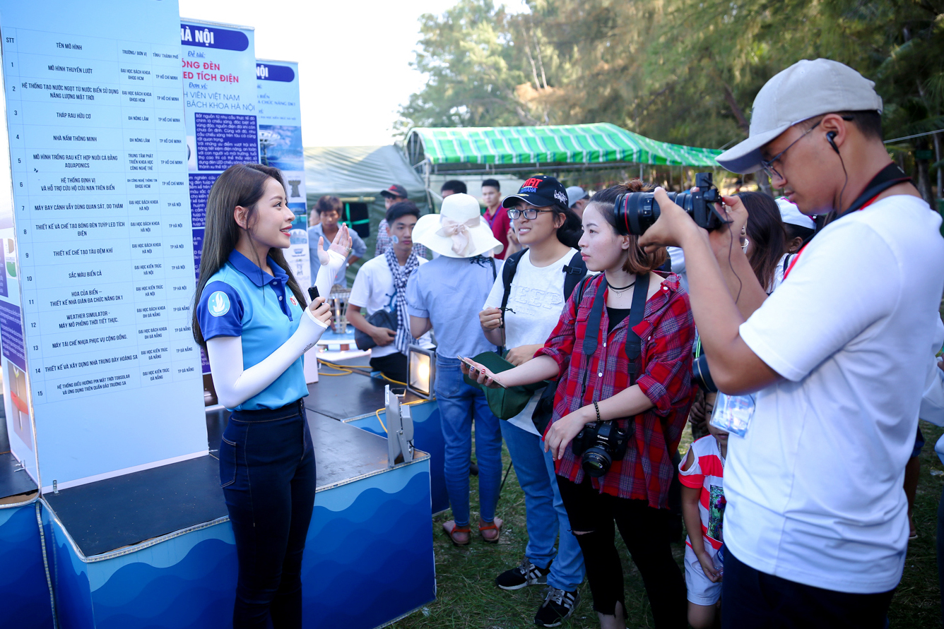 Trả lời phỏng vấn truyền thông, Chi Pu bày tỏ sự ấn tượng và ngưỡng mộ trước tình yêu biển đảo Tổ quốc của sinh viên được hiện thực hóa thành những dự án thiết thực, mang tính thực tế cao.