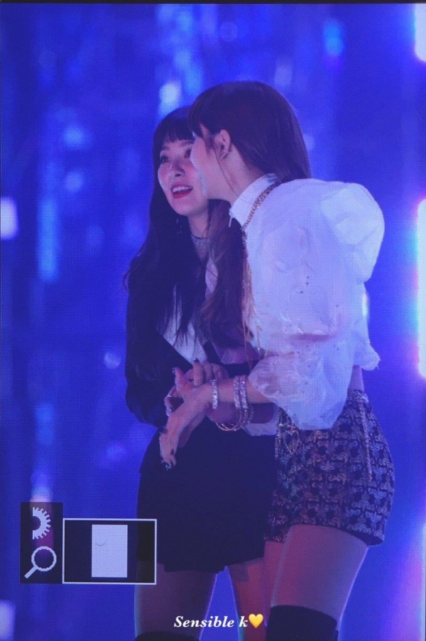 Còn về tình cảm giữa Black Pink và Red Velvet thì thôi khỏi trầm trồ vì nó hiển nhiên đến độ người hâm mộ đã quá quen thuộc. Lần gần nhất khiến chiến hạm Black Pink và Red Velvet ngày một đông người hâm mộ kéo nhau đổ vào là ở lễ hội âm nhạc cuối năm SBS Gayo Daejun 2017 đã diễn ra tại Gocheok Sky Dome, hai cô nàng Jennie và Irene vui vẻ nắm tay, trò chuyện cùng nhau khi đang di chuyển trên sân khấu. Khung cảnh này ngay lập tức được fan của cả hai ghi lại trong những bức ảnh tuyệt đẹp.