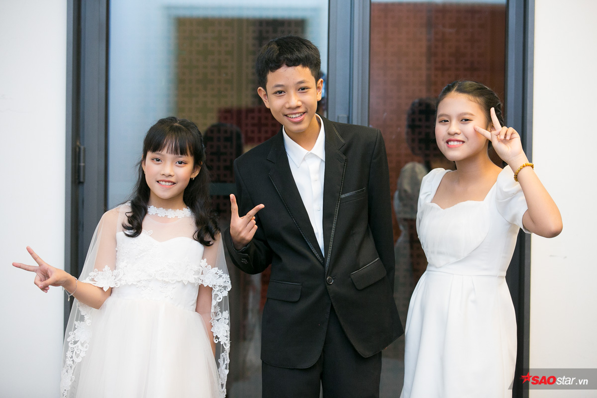 Thầy trò thí sinh The Voice Kids tề tựu tại hậu trường sự kiện.