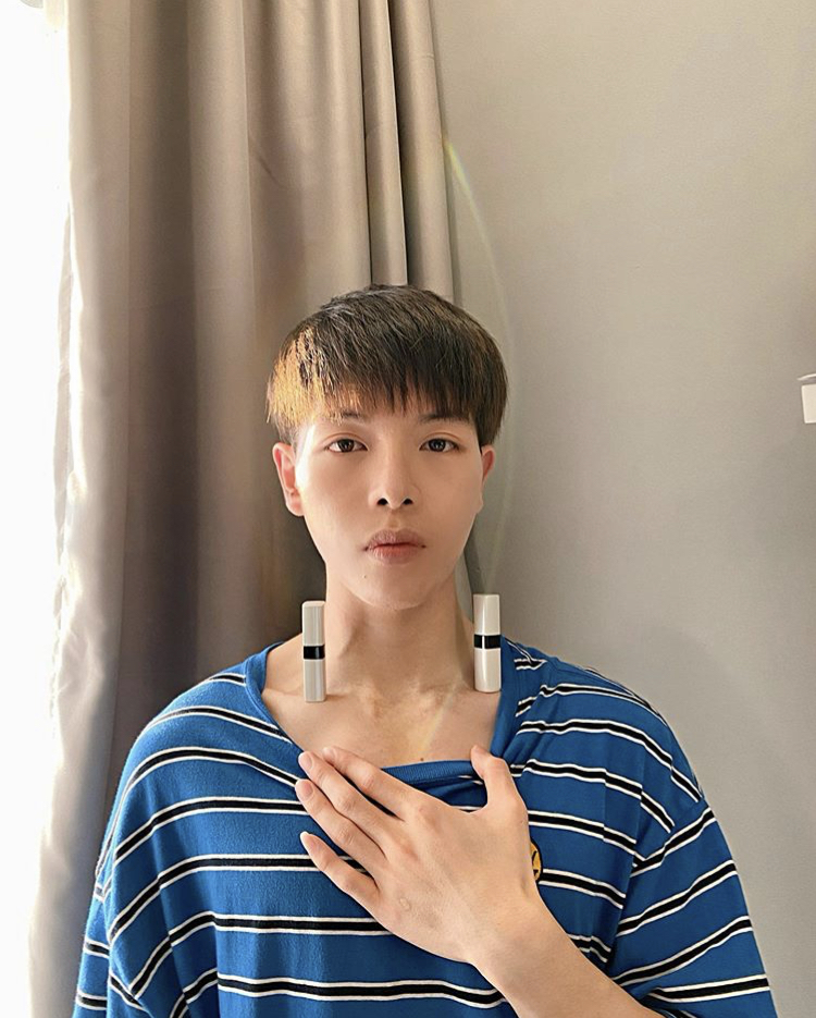 Mới đây, trên trang cá nhân, Đức Phúc vừa đăng tải loạt hình ảnh thực hiện thành công thử thách #LipstickChallenge khi đặt được 2 cây son lên 2 bên hõm xương quai xanh. Đi kèm là dòng chú thích: “Đặt thử chơi mà lại được haha”.