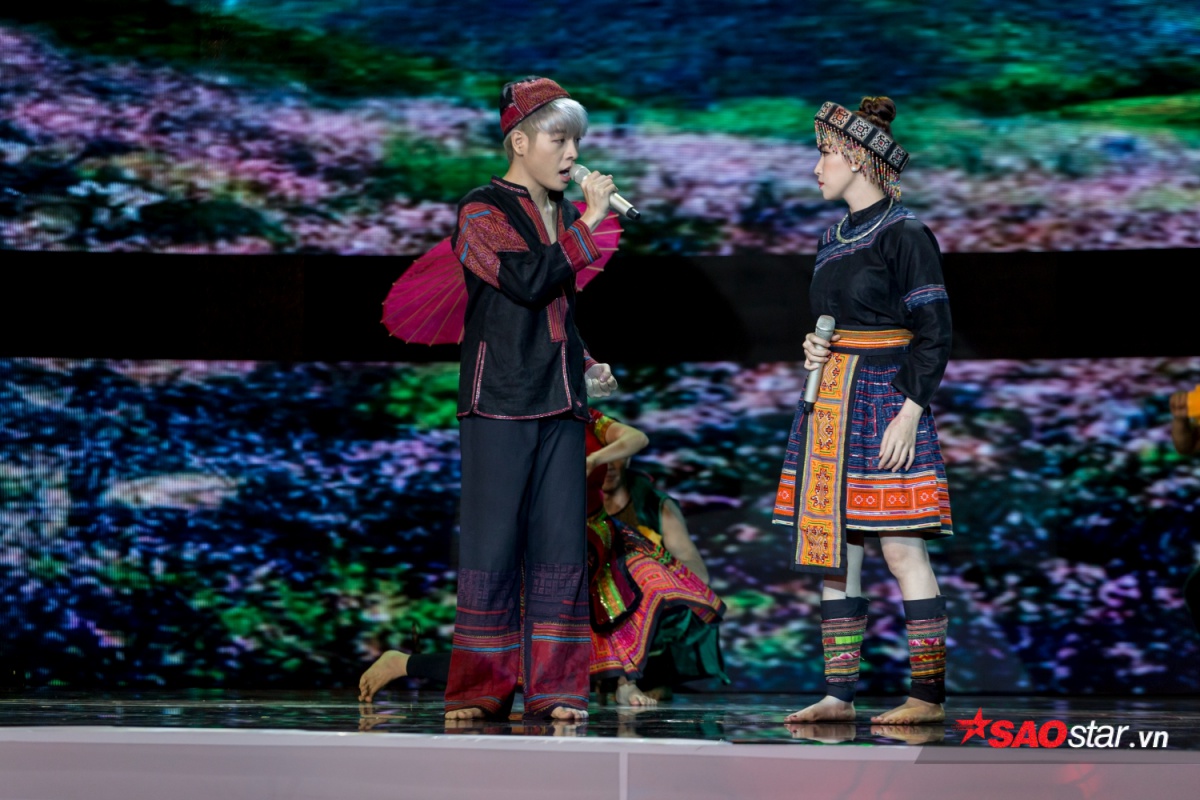 Cao Công Nghĩa và Đức Phúc tái hiện khung cảnh núi rừng thơ mộng cùng trang phục đầy màu sắc. Không sử dụng những ca khúc phổ biến thân thuộc với khán giả, cả hai lựa chọn ca khúc từng được cố vấn Cẩm Ly thể hiện thành công - Lời tình mây gió.