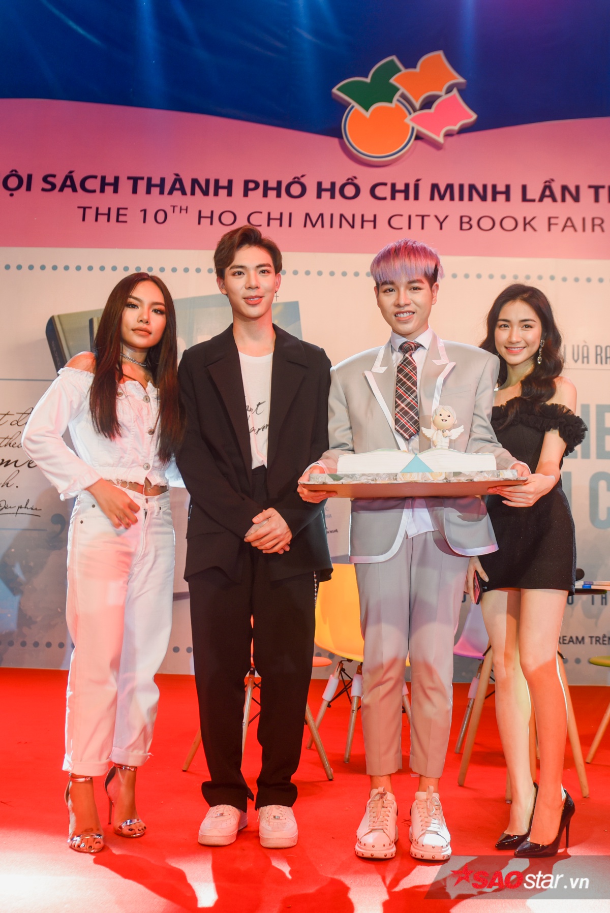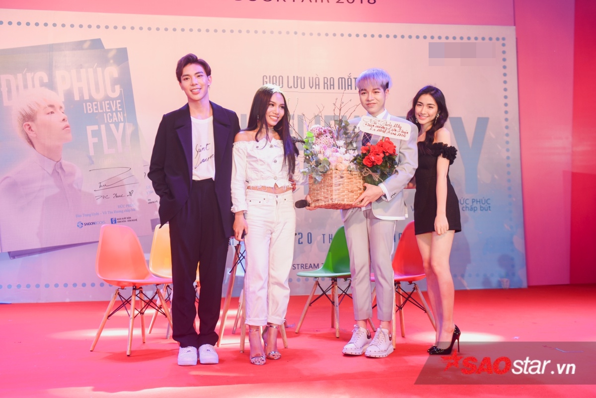 Đặc biệt, buổi ra mắt và ký tặng sách của giọng ca Ánh nắng của anh trở nên náo nhiệt và sôi động hơn khi có sự xuất hiện của chị em nhà Hoa dâm bụt Hoà Minzy - Erik cùng Quán quân Giọng hát Việt mùa thứ 2 - Vũ Thảo My.