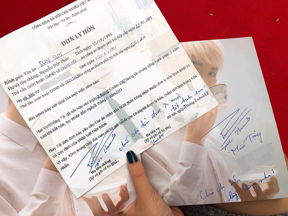 Đơn ly hôn của Đức Phúc gửi đến toà án Sun Sun kèm theo lời nhắn nhủ: “Chúc chị tìm được người mới tốt hơn em”.