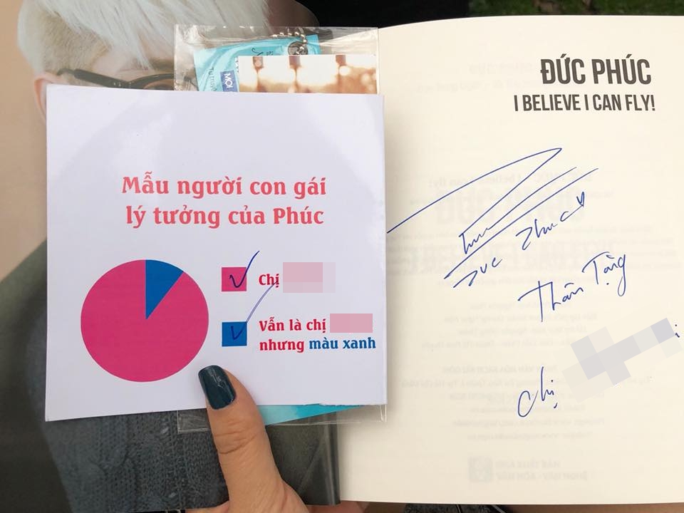 Bên cạnh đó, buổi ký tặng sách còn sôi động và hào hứng hơn khi các fan nghĩ ra ý tưởng độc đáo và bắt anh phải thực hiện.