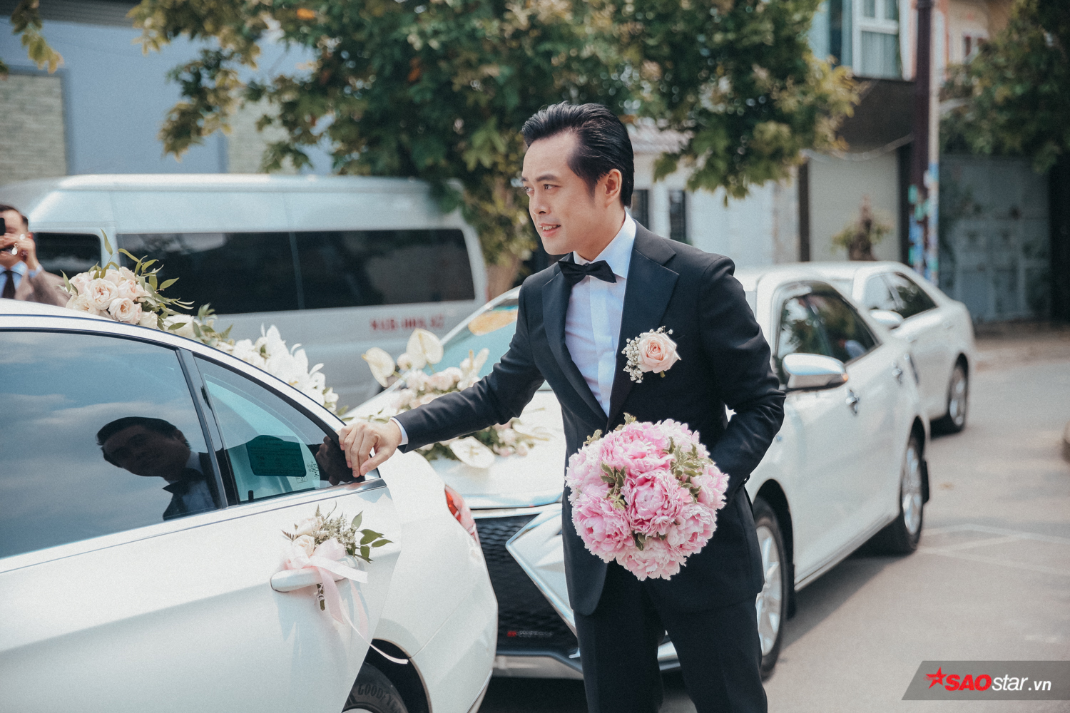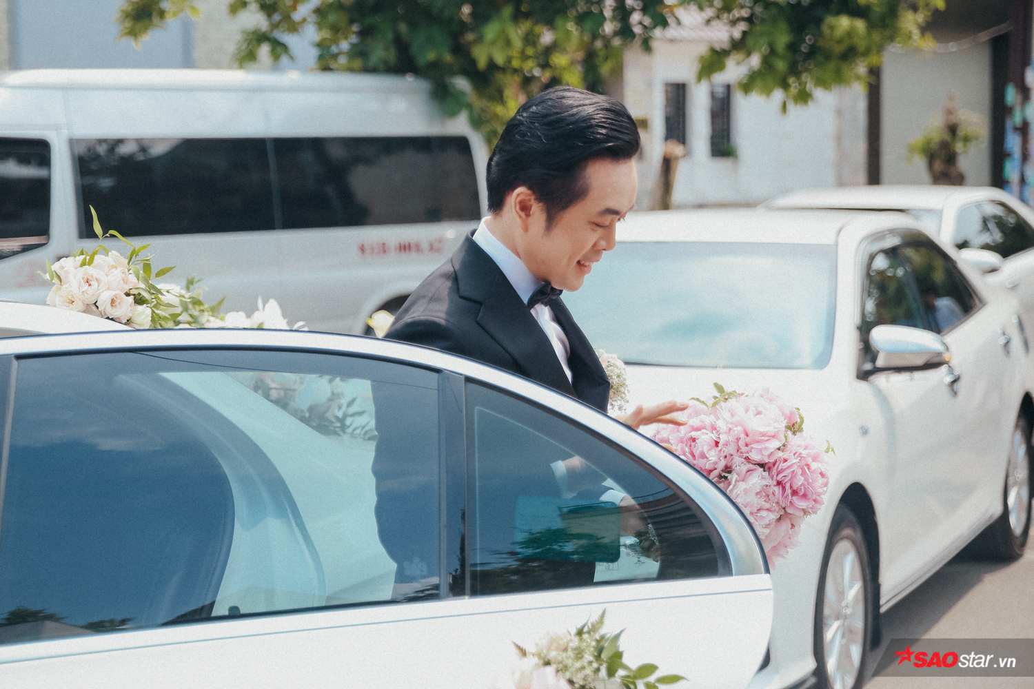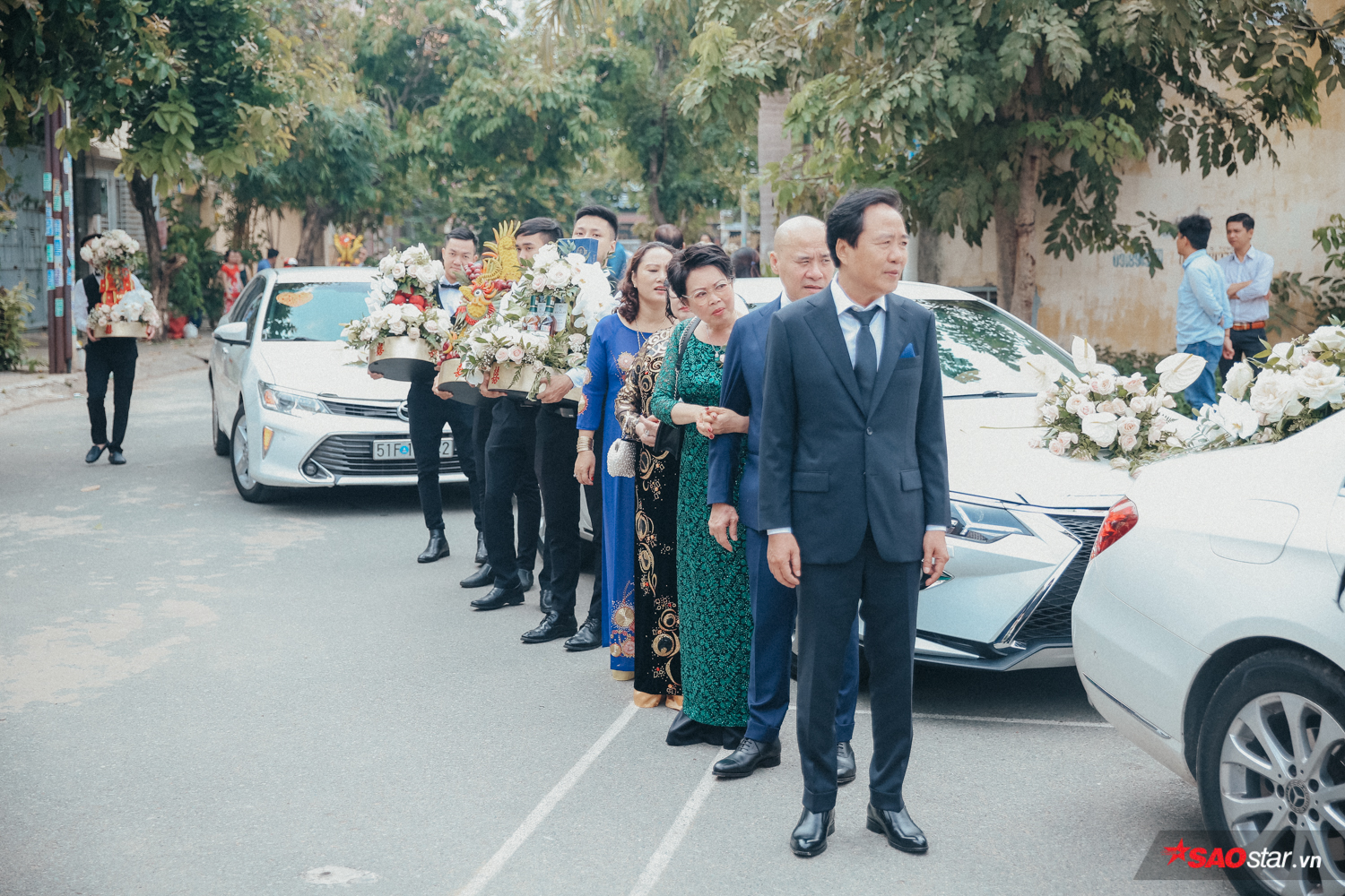Chú rể Dương Khắc Linh đã xuất hiện tại nhà cô dâu Sara Lưu để tiến hành nghi thức đón dâu, chuẩn bị “đưa nàng về dinh” vào lúc 10h ngày 2/6. Nam nhạc sĩ “chơi lớn” khi cho hẳn một đoàn xe hùng hậu lên đến hơn 20 chiếc được kết hoa xinh xắn xuất hiện tại Lễ Vu quy.