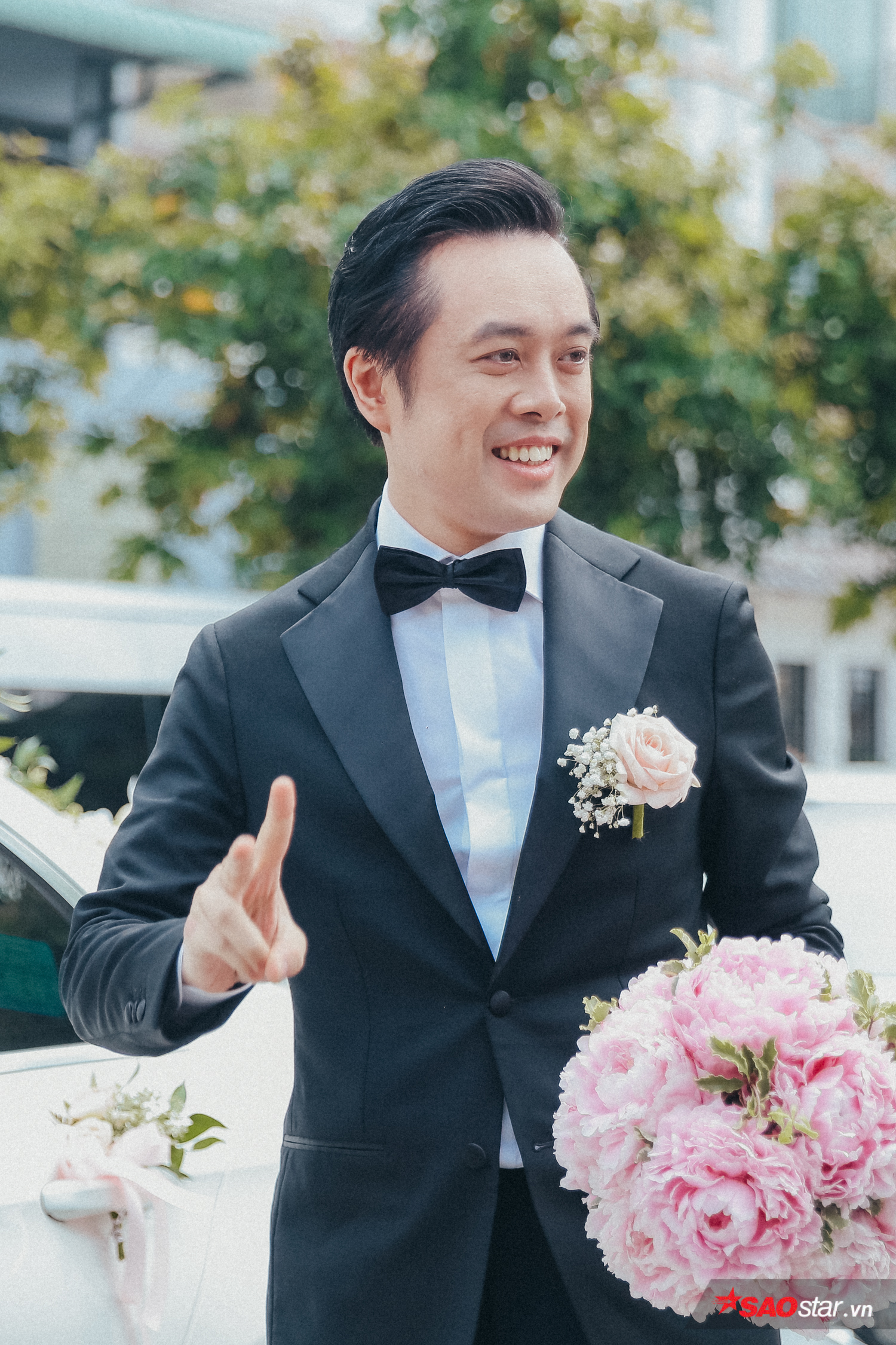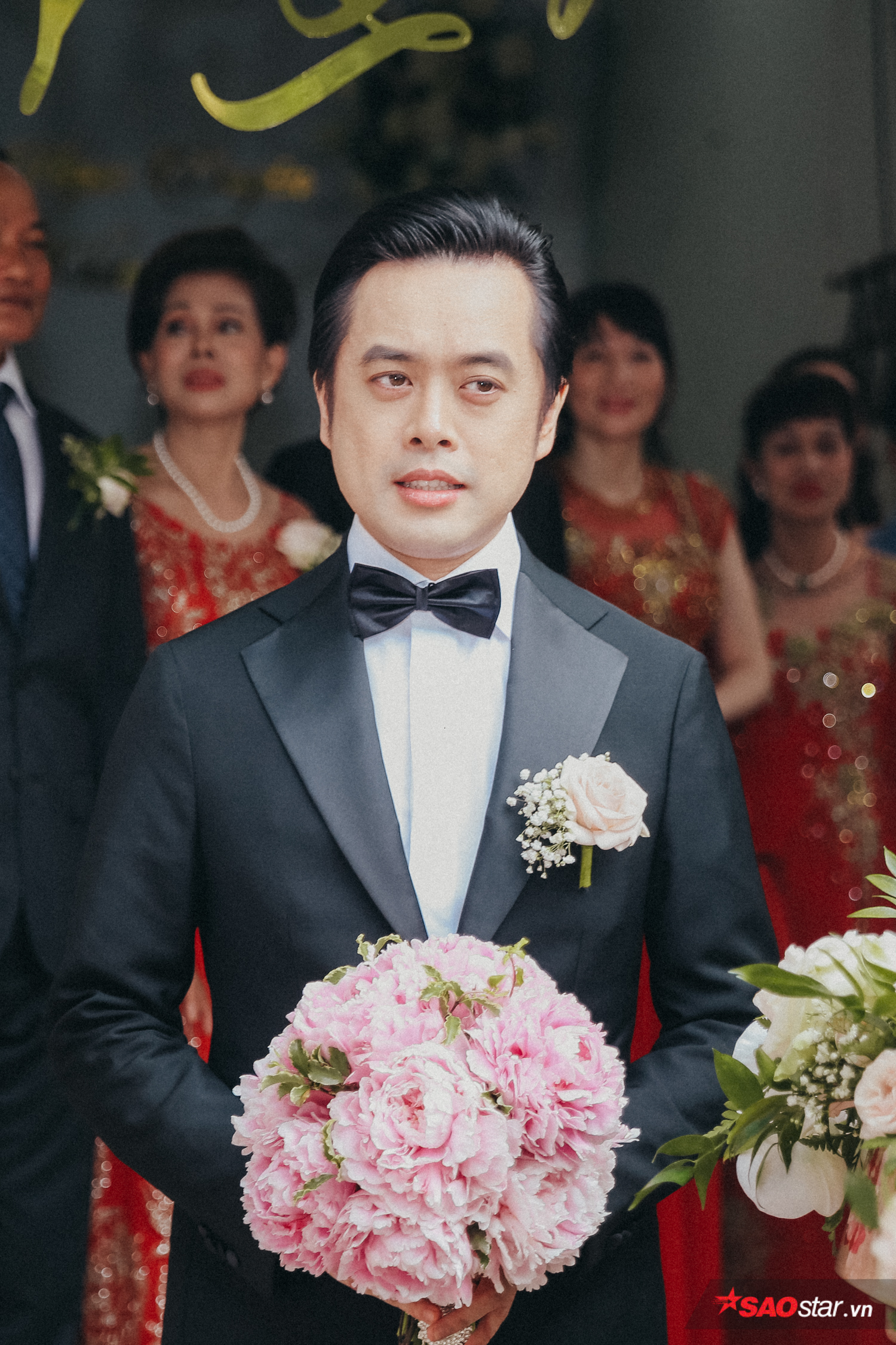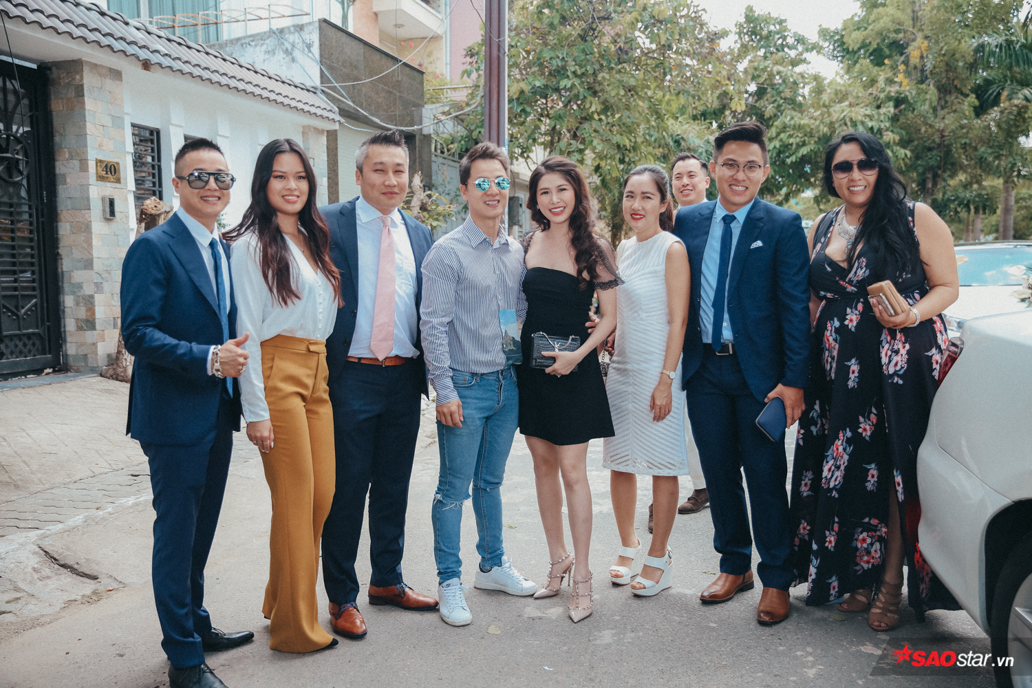 Diện bộ vest lịch lãm, Dương Khắc Linh tươi cười rạng rỡ chào hỏi mọi người, ngoài gia đình còn có vợ chồng nam ca sĩ Đăng Khôi “tháp tùng” anh. Các mâm quả được trang trí cầu kỳ, tinh xảo thu hút sự chú ý của mọi người, ông xã của Sara Lưu thật sự rất kỹ tính trong việc chuẩn bị mọi thứ ở mức hoàn hảo nhất.