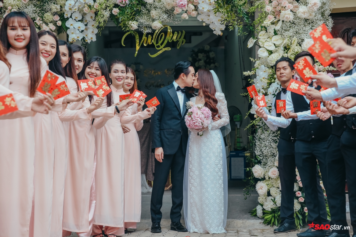 Sau khi hoàn tất các nghi thức, Dương Khắc Linh và Sara Lưu tiến ra bên ngoài phát lì xì cho dàn bưng tráp của hai bên gia đình. Tối nay, hôn lễ của cặp đôi sẽ được tổ chức tại một khách sạn 5 sao ở TP HCM với sự tham gia của đông đảo các nghệ sĩ Việt.