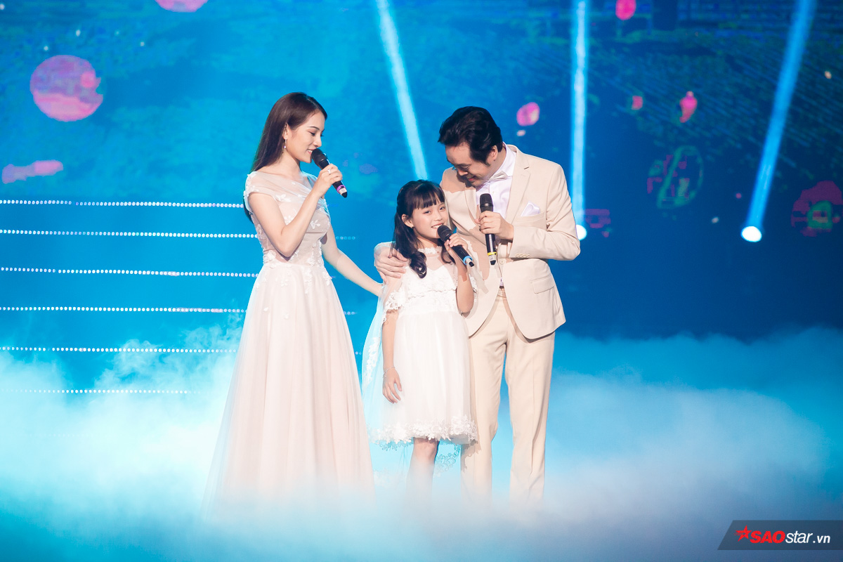 Vương Hồng Thúy như thiên thần nhỏ bên cạnh “mẹ” Sara Lưu và “ba” Dương Khắc Linh.