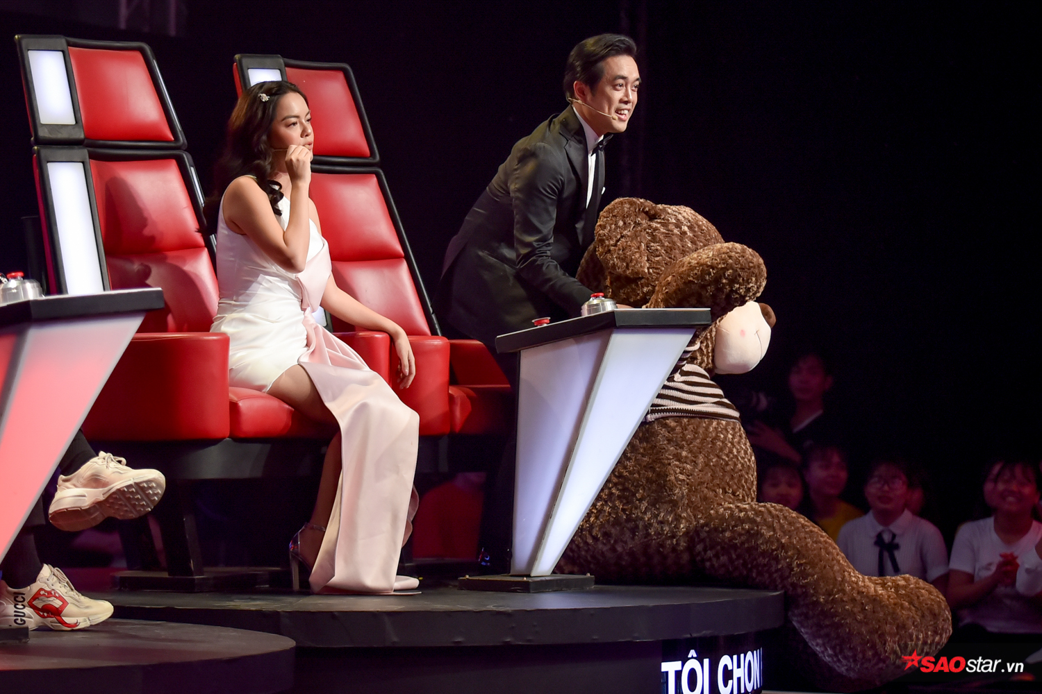 Minh chứng rõ ràng nhất là ở phần trình diễn của giọng ca nhí Minh Châu đến từ Bình Định, cặp đôi Dương Khắc Linh - Phạm Quỳnh Anh không ngại mang cả chùm bong bóng hoành tráng lên sân khấu với lời hứa sẽ tặng cho thí sinh khi về đội. Tuy nhiên, gặp trúng cô bé lanh lợi, Minh Châu đã hỏi thẳng Dương Khắc Linh: “Nếu con không về đội thì cô chú có cho con chùm bong bóng này không ạ?”.