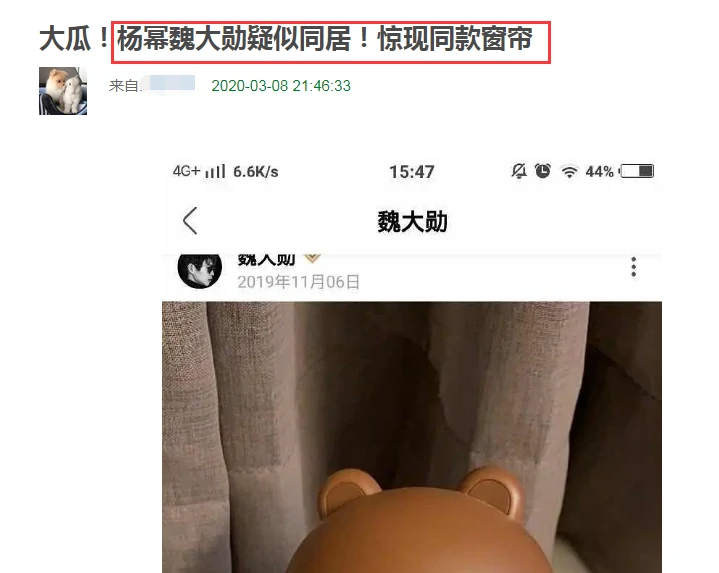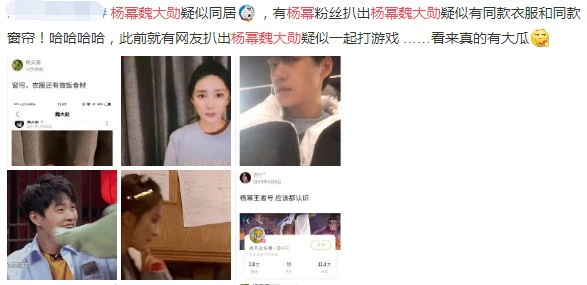 Ngày 07.03, dân mạng Trung so sánh hai video mới nhất giữa Dương Mịch cùng Ngụy Đại Huân, đã phát hiện vô số điểm tương đồng, đặt nghi vấn cặp đôi không hề chia tay mà đã tiến đến giai đoạn sống thử.
