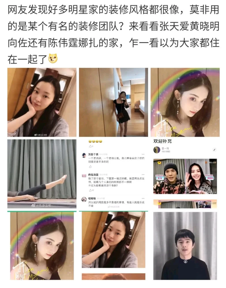 Trước đó, truyền thông đưa tin xác nhận việc bố trí nội thất, phong cách trang trí của minh tinh là khá tương đồng. Rèm cửa màu xám đen gần như là yếu tố tiêu chuẩn được lòng người nổi tiếng nhất. Bởi lẽ đây là “vũ khí” ngăn cản, chống lại việc chụp trộm của cánh phóng viên. Thế nên chẳng thể kết luận bối cảnh nghệ sỹ nào giống nhau thì họ đều đang ở chung, sống thử được. Bên cạnh đó, chiếc áo thun xanh của Dương Mịch thuộc thương hiệu thời trang nữ của Ý - Brandy Melville. Chiếc áo này chỉ có một size duy nhất và dành cho nữ, thế nên Ngụy Đại Huân chẳng thể mặc vừa.