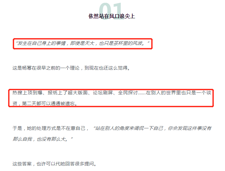 Vì vậy, cách xử lý của Dương Mịch là không để ý những tin tức về bản thân mình. Cô cảm thấy đứng dưới góc độ của người khác sẽ nhìn nhận, đánh giá những tin đồn về nghệ sỹ cũng không có gì to lớn, chỉ đơn giản là chủ đề để bàn tán, trò chuyện. Dương Mịch từng bày tỏ: “Nếu tôi bị chụp lại những hình ảnh nào đó sẽ thẳng thắn mà thừa nhận“. Nhưng giờ đây, nữ diễn viên lại chọn cách im lặng, có lẽ cô nàng đã có dự tính khác, suy nghĩ riêng của mình.