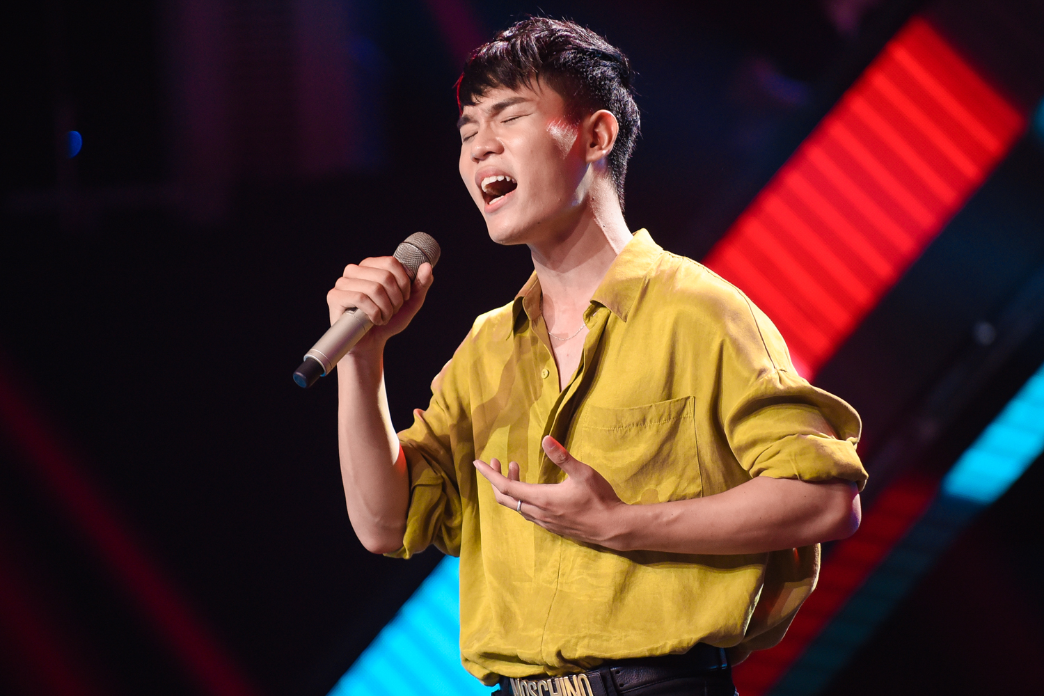 Ngay khi giọng hát Riêng một góc trời vừa dứt lời, HLV Hồ Hoài Anh liền nhanh chóng bổ sung: “Em hết suất rồi anh ạ” khiến cả trường quay bật cười.