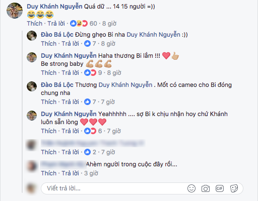 Trong phần chat qua lại bằng những bình luận bên dưới đoạn trạng thái, Đào Bá Lộc còn ngỏ lời muốn đóng phim chung với Duy Khánh. Không chần chừ, cựu thành viên nhóm hài DAMtv nhanh chóng chấp nhận lời đề nghị trên và cho hay lúc nào bản thân cũng sẵn lòng chào đón.