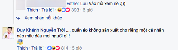 Hình ảnh Trấn Thành và Duy Khánh diện đồ đôi nhanh chóng được lan truyền rộng rãi. Cụ thể, một trang fanpage chuyên chia sẻ về những vấn đề trên showbiz đã đăng tải hình ảnh trên. Trước loạt bình luận từ cư dân mạng, Duy Khánh đã có những phản hồi thẳng thắn: “Trời, quần áo không sản xuất cho riêng một cá nhân nào mặc đâu mọi người ơi!”.