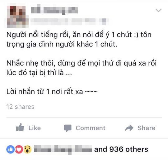 Chia sẻ mới nhất của Duy Khánh trên trang cá nhân.
