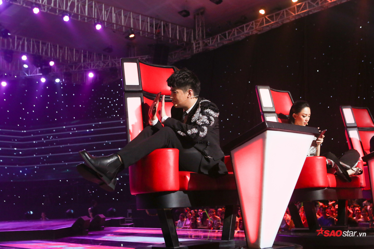 Noo Phước Thịnh được biết đến là một trong những nam ca sĩ sở hữu lượng fan đông đảo nhất Vpop, nên không quá khó hiểu khi từ dưới hàng ghế khán giả là dày đặc những banner lớn, những tiếng hò reo không ngớt từ các fan dành cho nam ca sĩ. Biết rõ từng nhất cử nhất động đều… lọt vào tầm ngắm của fan, Noo Phước Thịnh không tiếc “thả thính” những khoảnh khắc… không thể đáng yêu hơn trên “ghế nóng” The Voice 2018.