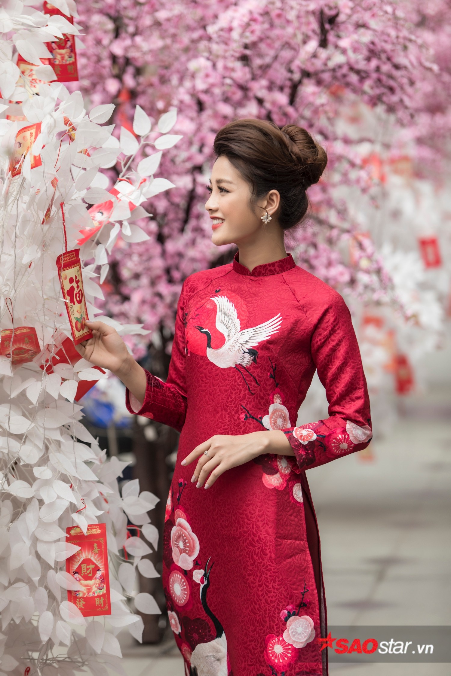 Mới đây, nhân dịp Tết đến xuân về, Mỹ Duyên kết hợp cùng SAOstar thực hiện bộ ảnh chào đón năm mới trong trang phục truyền thống của người phụ nữ Việt Nam. Người đẹp sinh năm 1995 chia sẻ rất thích áo dài, tuy nhiên không phải lúc nào cũng có cơ hội để mặc.