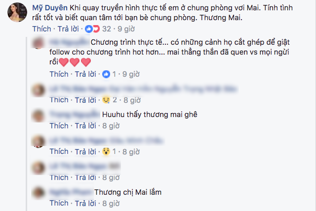 Cụ thể, trong phần bình luận của một người bạn trên trang Facebook cá nhân nói về Mai Ngô, người đẹp gốc Tuyên Quang nhận xét chân dài trưởng thành từ The Face mùa đầu tiên tính tình rất tốt và luôn biết cách quan tâm đến bạn bè. Cô bày tỏ bản thân cảm thấy thương nữ người mẫu 22 tuổi khi bị cư dân mạng chỉ trích quá nhiều.
