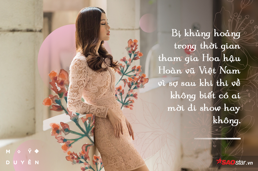 - Đúng là Duyên bị khủng hoảng trong khoảng thời gian đó. Mình suy nghĩ không biết khi thi về có ai mời đi show hay không. Thi xong không biết lấy tiền đâu ra để sống và tiếp tục công việc. Trong quá trình tham gia Hoa hậu Hoàn vũ Việt Nam, Duyên cũng được mời đi quay quảng cáo nhưng tiếc không đi được. Mặc dù vậy, sau cuộc thi, mình cũng được mọi người biết đến, đấy cũng là cơ hội để quảng bá hình ảnh, nếu sau này đi show cát-sê cũng tăng lên.
