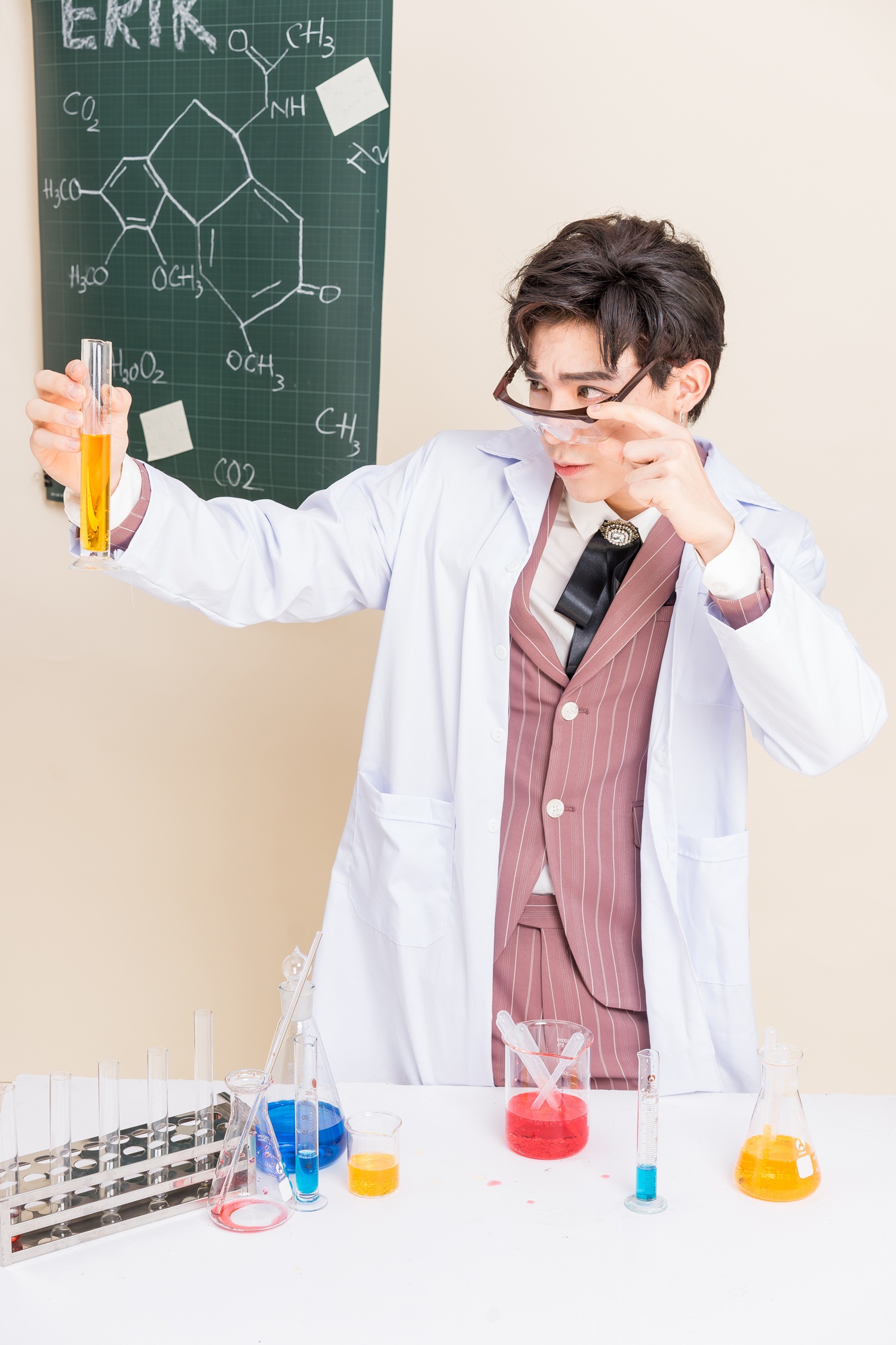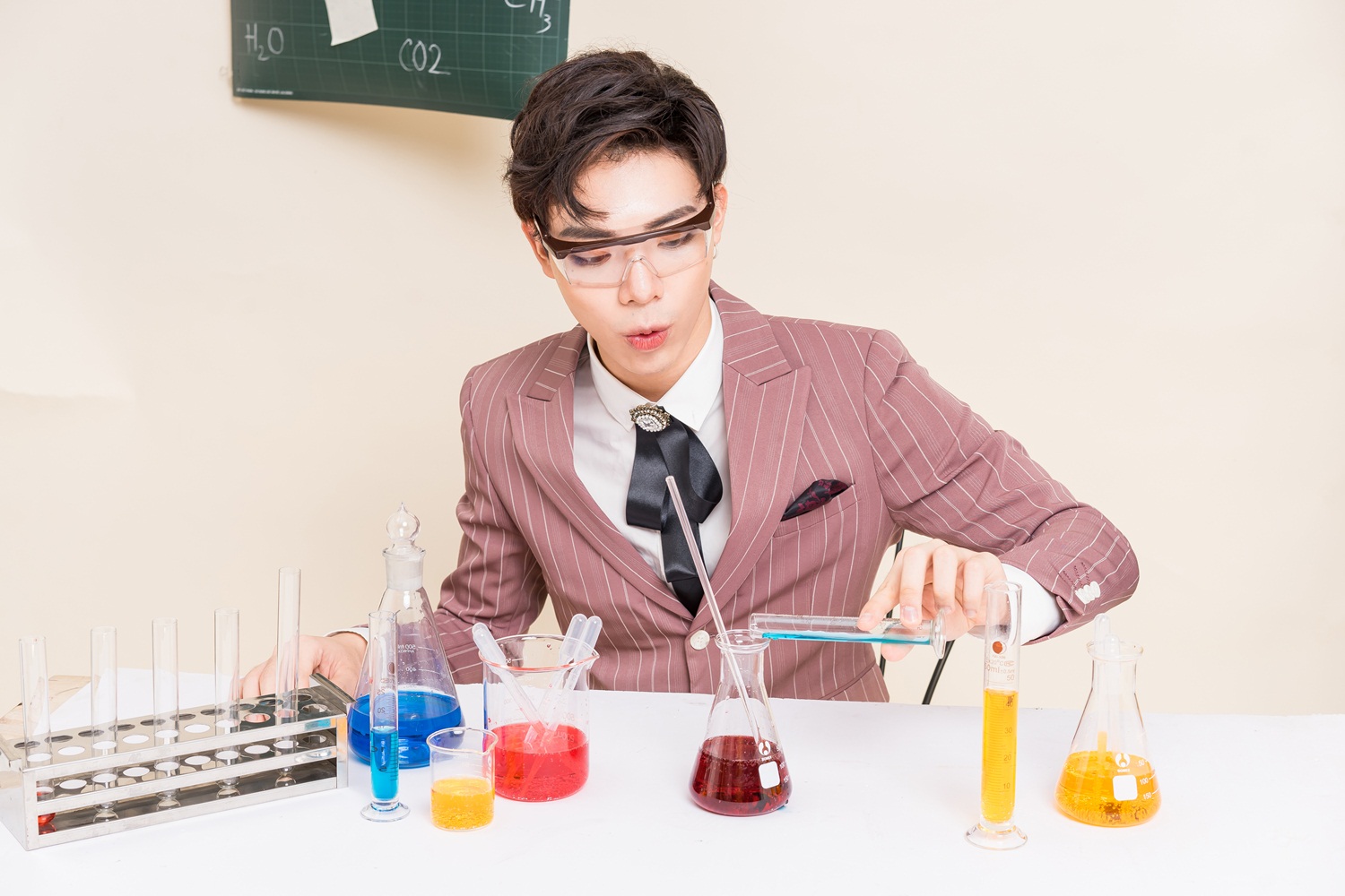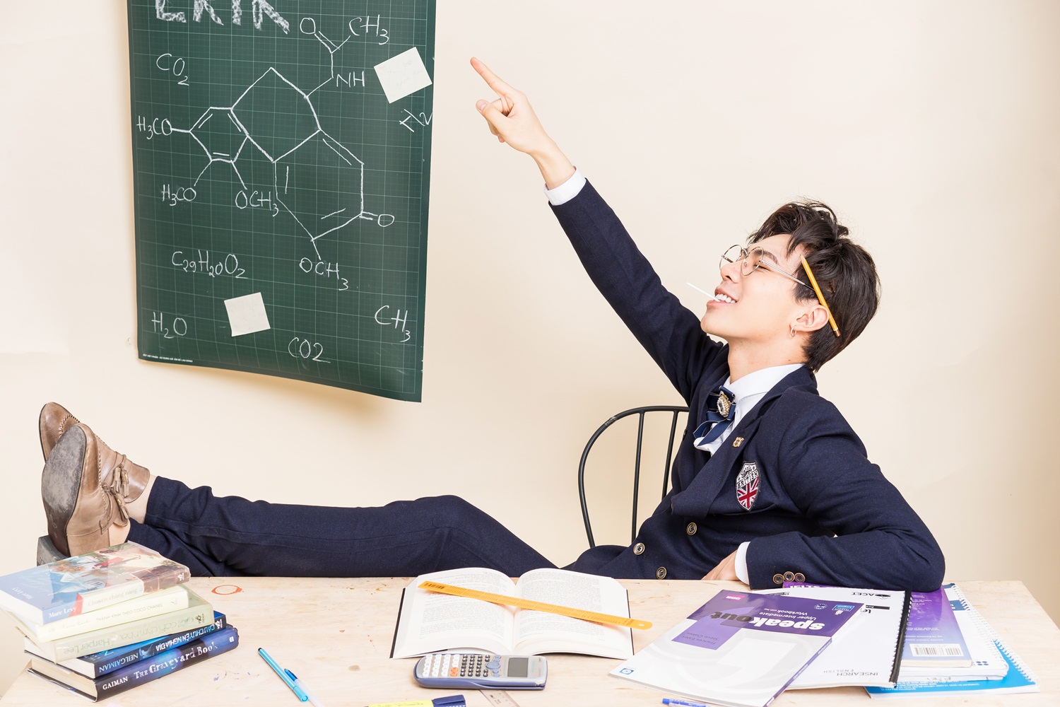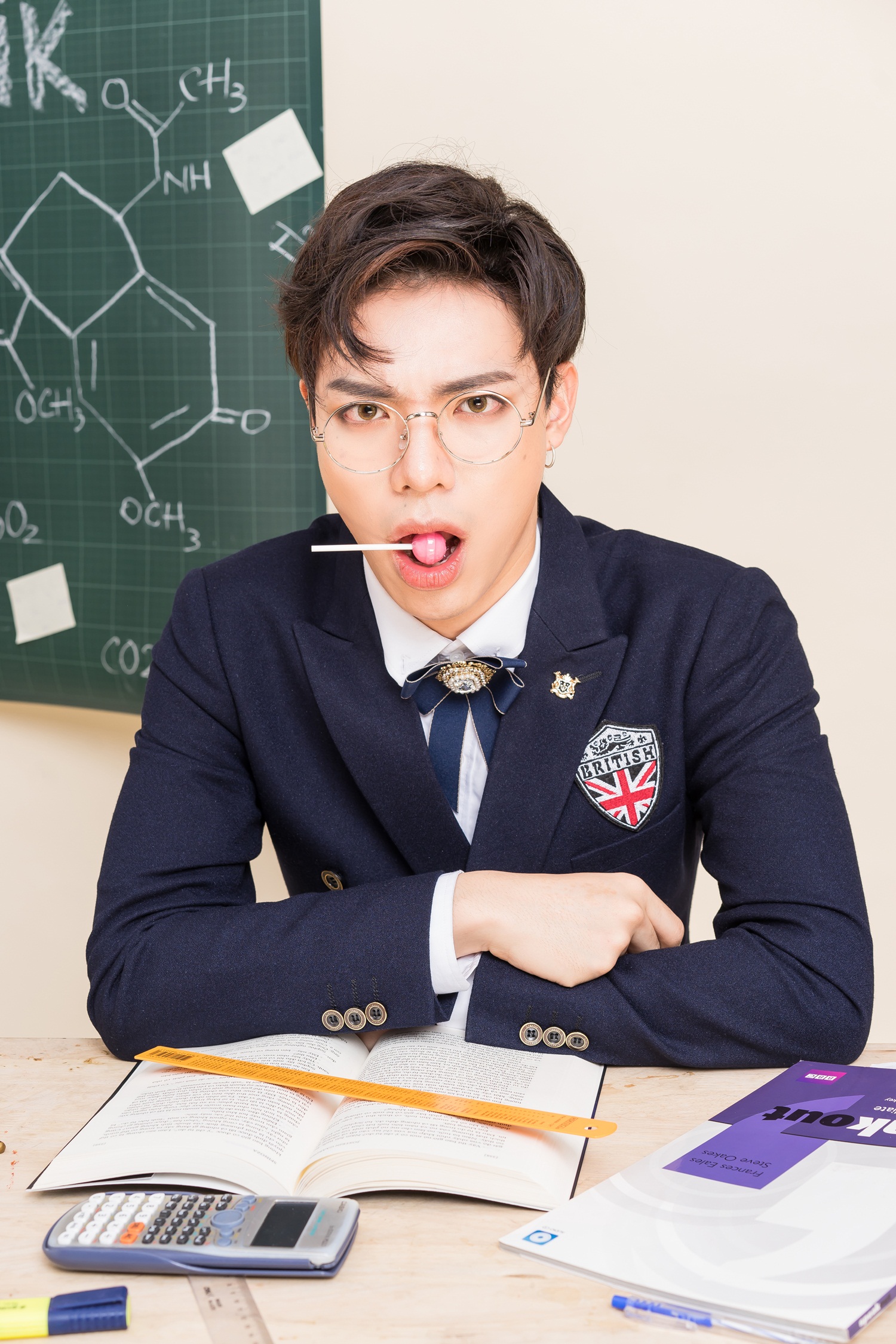 Trong hình ảnh của một thầy giáo - niềm mơ ước trước đây của Erik, anh vẫn không giấu được sự tinh nghịch của mình.