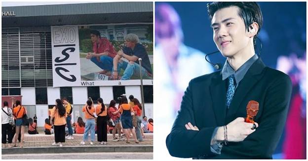 Trong khi đó, Sehun đã phản ứng rất hào hứng khi thấy những sắc áo cam giữa đám đông. Ở sự kiện này, anh vui vẻ trêu chọc các fan bằng câu hỏi liệu họ có thấy mình dễ thương không.