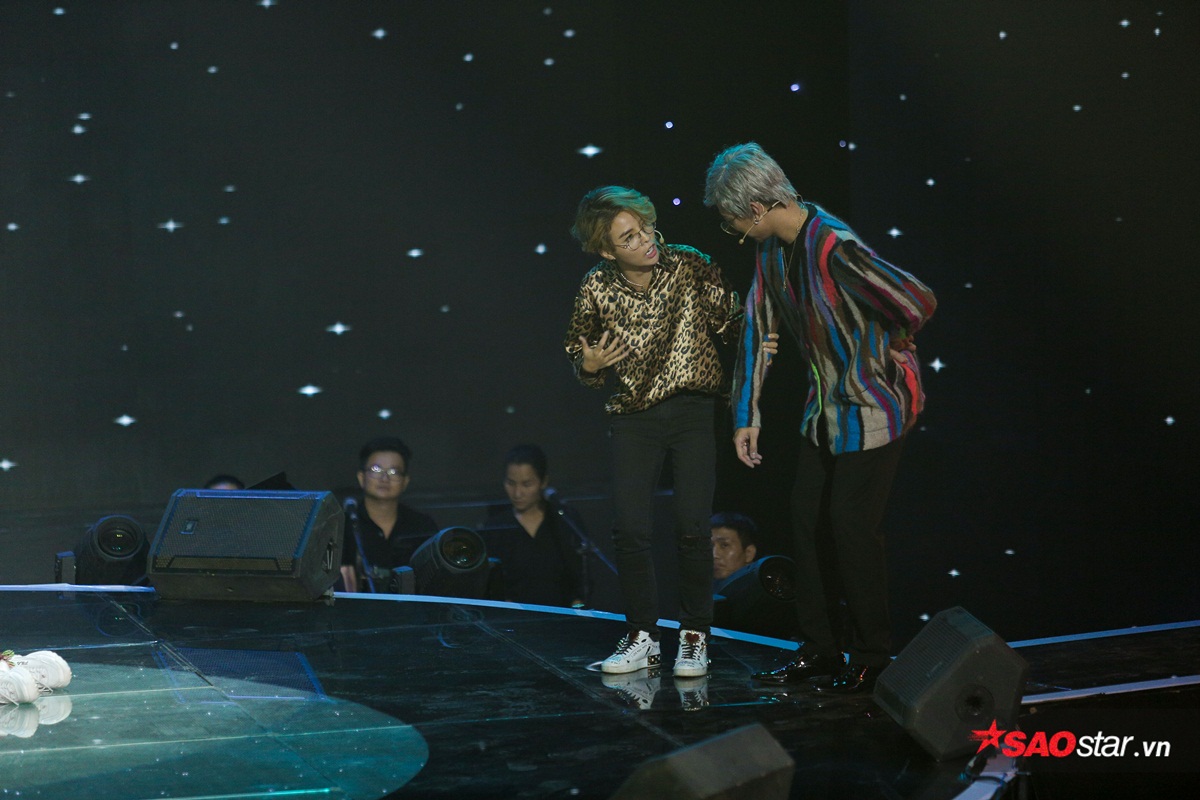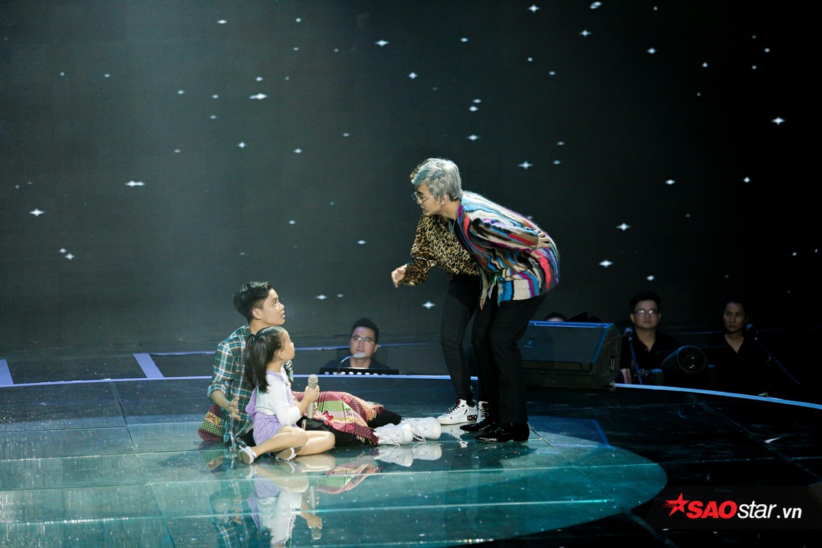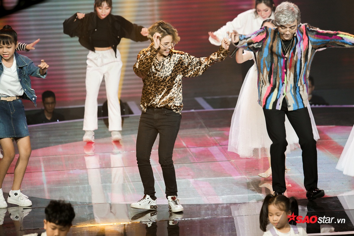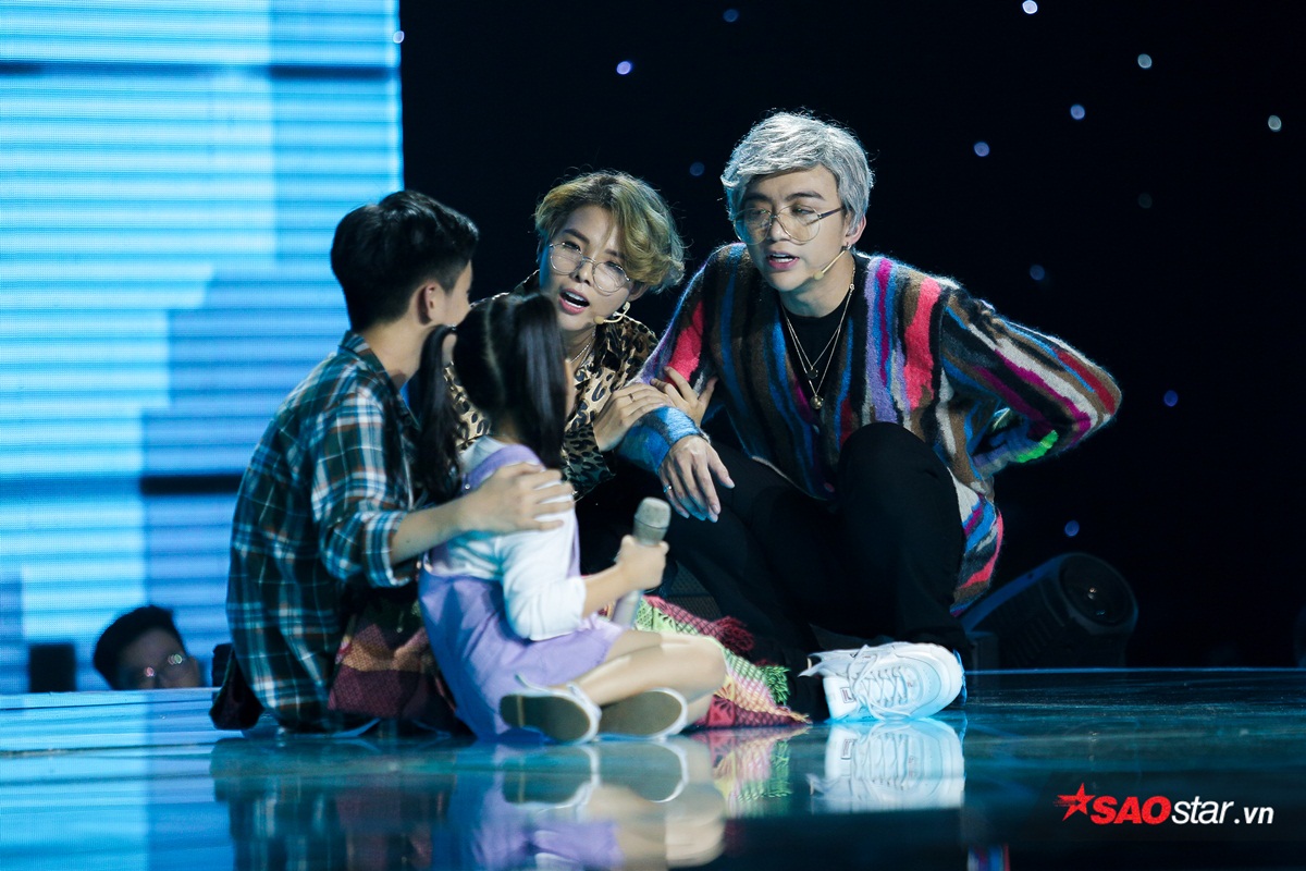 Để có được màn xuất hiện ấn tượng nhất cũng như kết lại câu chuyện âm nhạc về tình cảm gia đình, Soobin Hoàng Sơn - Vũ Cát Tường đồng loạt “lão hóa gấp” thành 2 cụ già dang đôi tay ấm áp che chở 2 em bé cơ nhỡ Minh Nhật - Hải Yến. Những câu thoại không thể đáng yêu hơn “Ông nhìn tôi xem đã đủ bóng bẩy chưa, giống 'xì phố' chưa ông? Mấy đứa cháu sẽ hết hồn với tôi” khiến các fan của team Sơn - Tường vô cùng thích thú.