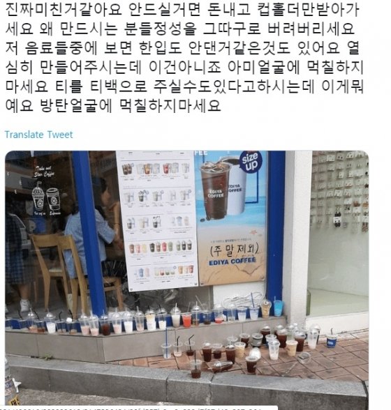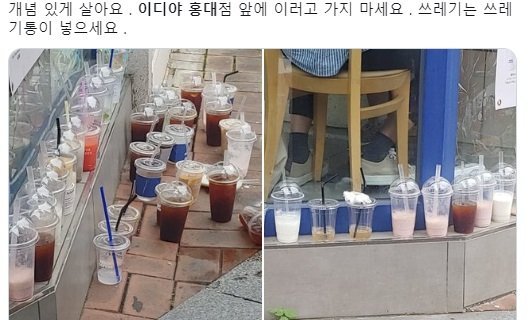 12. [+32, -0] Tôi đoán là đẳng cấp của một ca sĩ đi lên không có nghĩa là người hâm mộ của họ cũng vậy ㅋㅋㅋ Nếu bạn không uống xong đồ uống của mình, ít nhất hãy vứt nó đúng cách chứ. Dừng lại và suy nghĩ trước khi bạn xả rác và tự hỏi liệu ca sĩ của bạn sẽ vui hay xấu hổ khi thấy điều này
