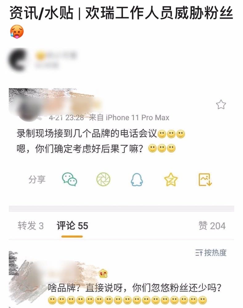 Bất ngờ hơn vào tối ngày 21, nhân viên Hoan Thụy đã có lời hồi đáp với fan hâm mộ: “Nhận được điện thoại hội nghị của mấy sản phẩm, các bạn thật sự đã suy nghĩ kỹ đến hậu quả hay chưa?“, trực tiếp uy hiếp fan hâm mộ không nên làm lớn chuyện. Thế nhưng, người này cũng cho biết sẽ suy nghĩ kỹ đến những gì fan hâm mộ yêu cầu, có điều có những việc không phải muốn đổi là có thể đổi liền được.
