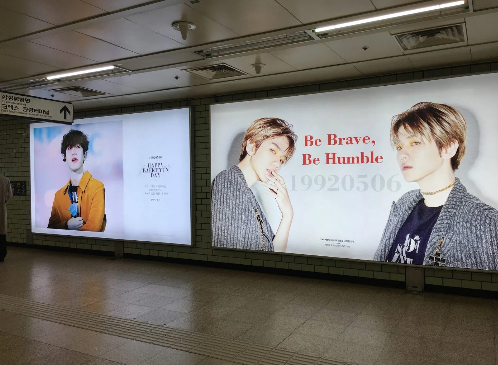 Hình ảnh Baekhyun xuất hiện cả trên màn hình LED của ga tàu điện ngầm.
