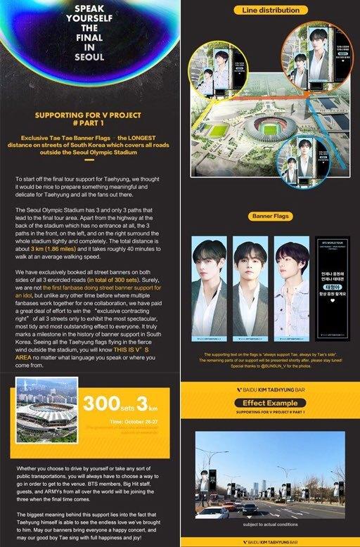 Mới đây, cộng đồng fan của anh chàng V (BTS) vui mừng thông báo đã ký hợp đồng độc quyền với ủy ban thành phố Seoul về việc căng banner dài 3000m quanh đường phố. Được biết, đây là dự án do fanclub tại Trung Quốc chuẩn bị như một món quà đặc biệt dành tặng thành viên BTS.