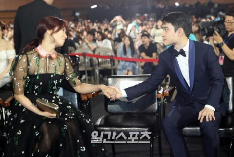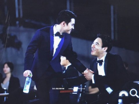 Tuy từng bị gọi là thần tượng khó tiếp xúc nhưng trong sự kiện, fan nhiều lần bắt gặp hình ảnh một D.O lễ phép chào hỏi các tiền bối cũng như thân thiện bắt tay, ôm vai những người đồng nghiệp của mình.