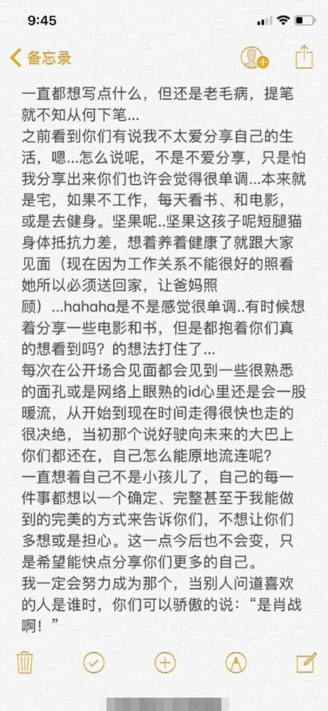 Mỗi lần gặp gỡ khi nhìn thấy những mã ID quen mắt, trong lòng tôi thật sự ấm áp… Luôn nghĩ bản thân mình không còn là đứa trẻ nữa, mọi chuyện của mình, tôi sẽ dùng cách làm chắc chắn, hoàn mỹ nhất có thể để các bạn không phải lo lắng quá nhiều… Tôi nhất định sẽ nỗ lực trở thành một người mà khi ai đó hỏi: 'Bạn thần tượng ai?', thì bạn có thể tự hào mà trả lời: 'Đó chính là Tiêu Chiến'